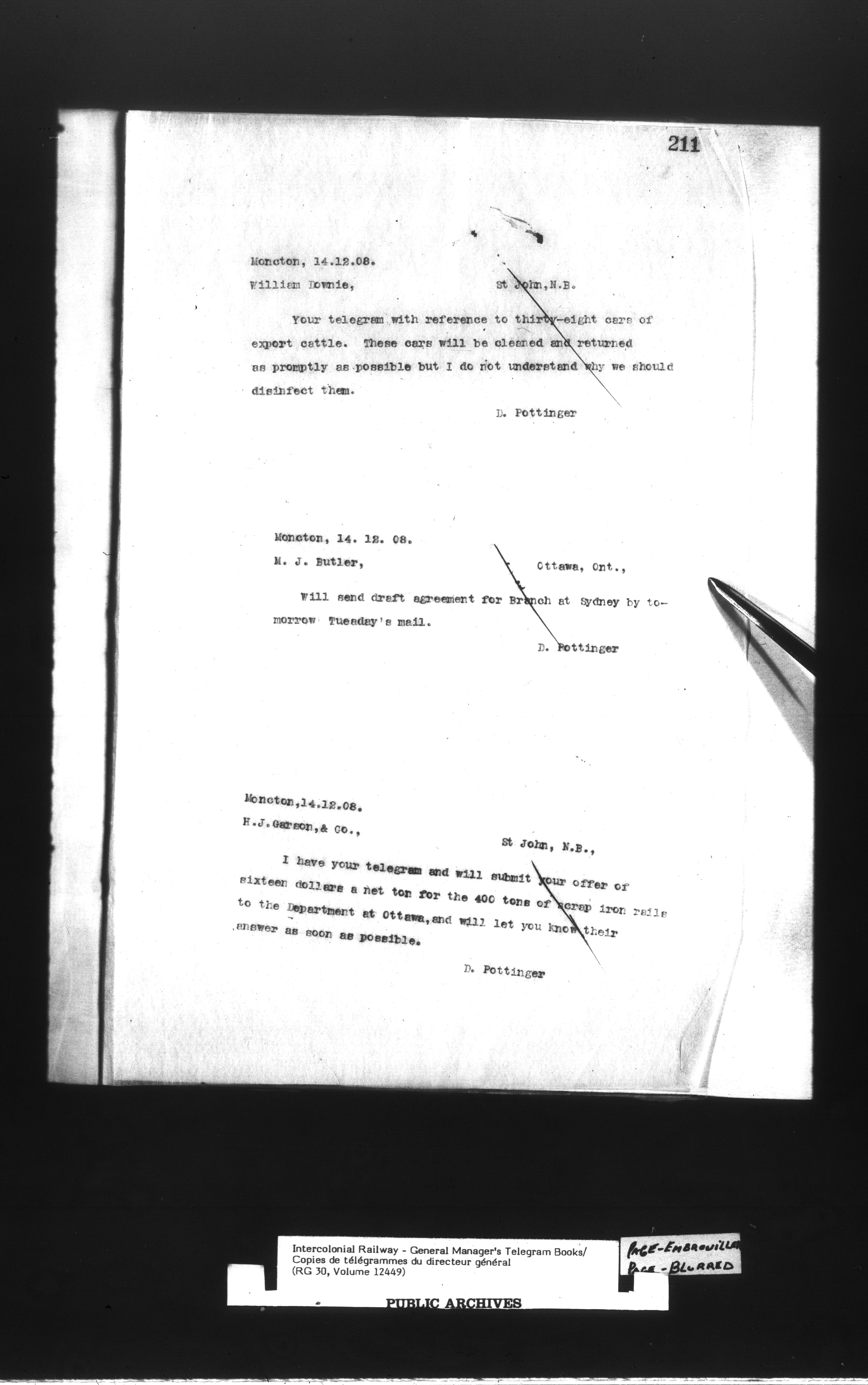 Canadian Government Railways : Office of the General Manager, Copies of telegrams - 13444