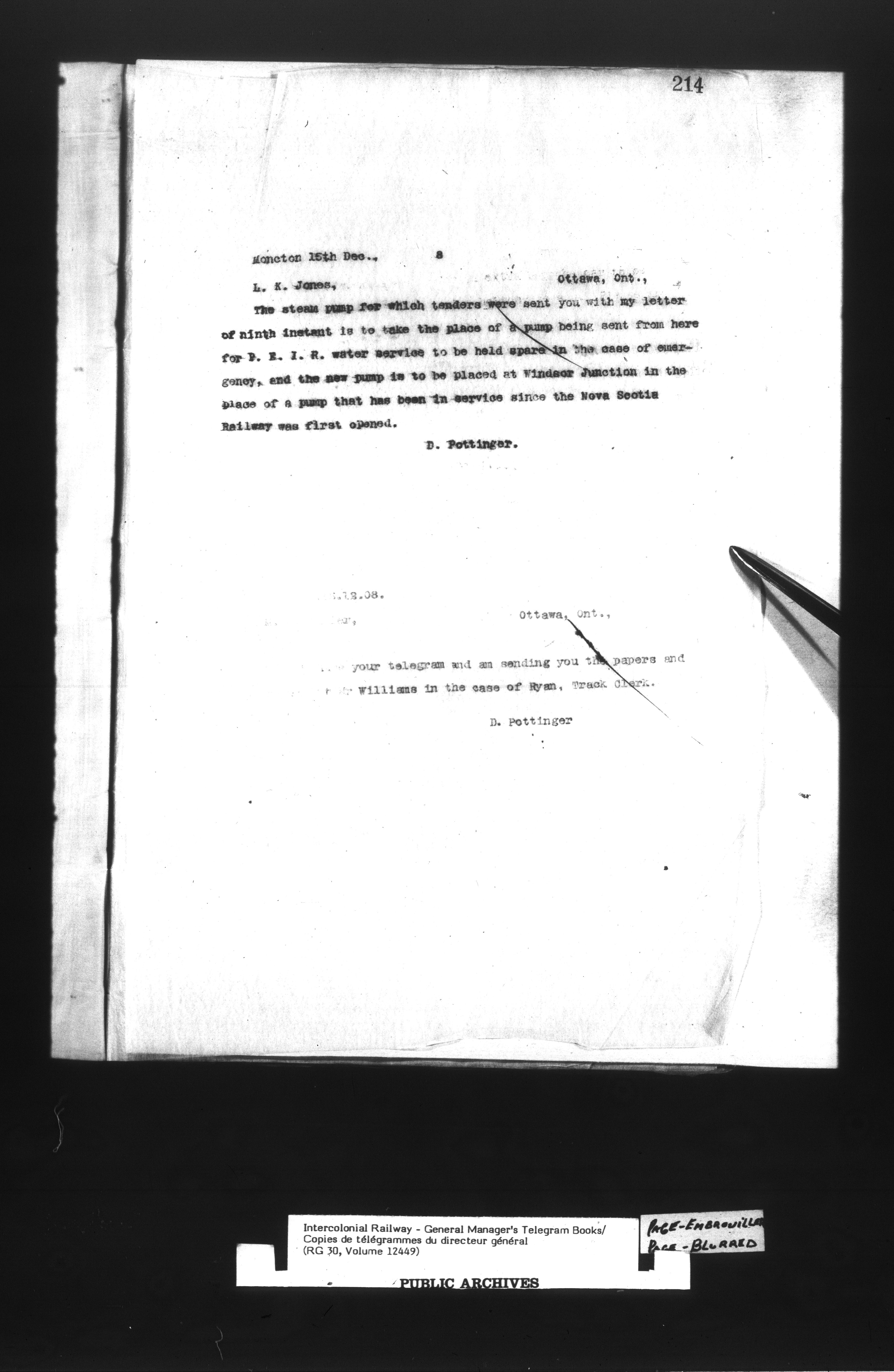 Canadian Government Railways : Office of the General Manager, Copies of telegrams - 13444