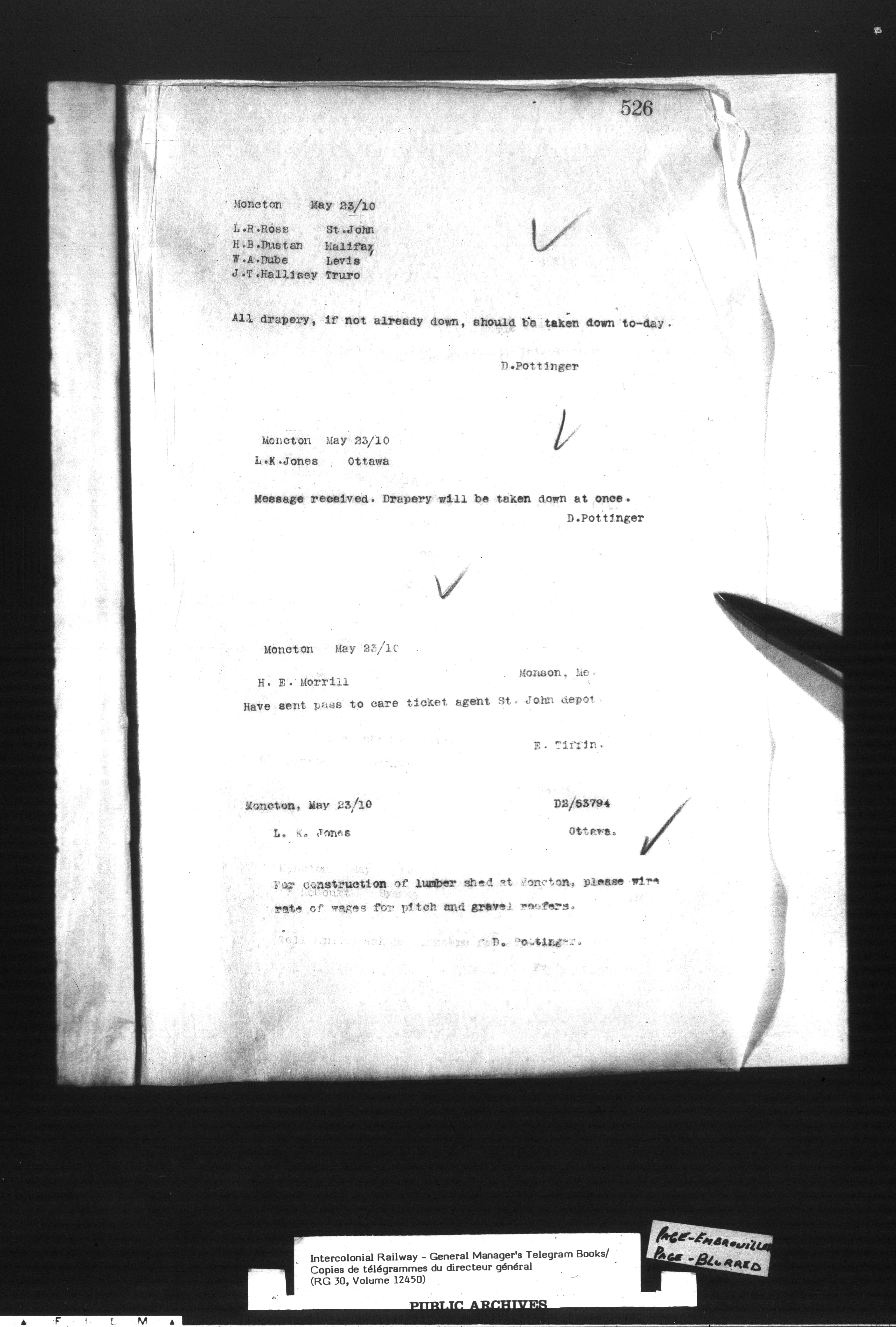 Canadian Government Railways : Office of the General Manager, Copies of telegrams - 13445