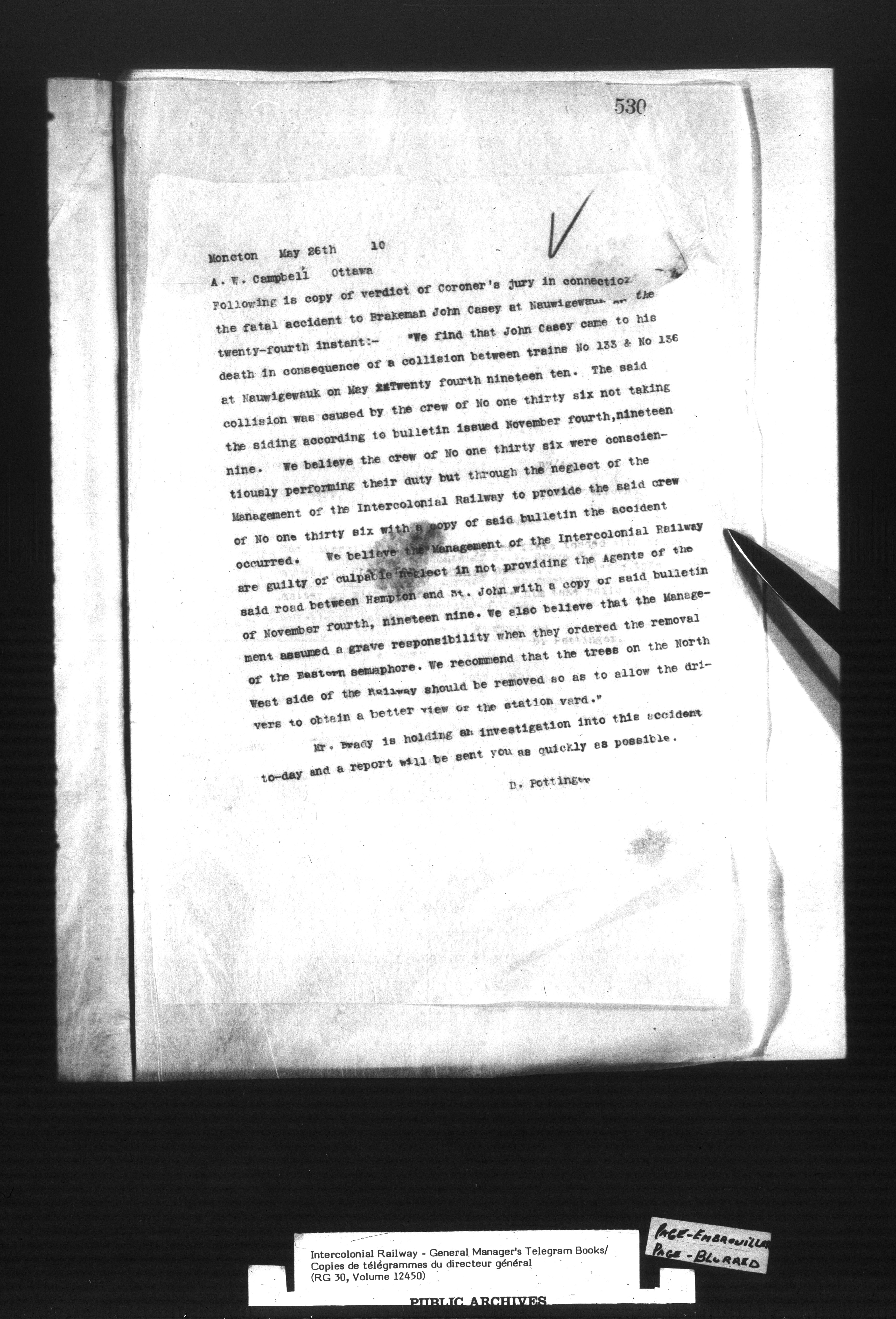 Canadian Government Railways : Office of the General Manager, Copies of telegrams - 13445