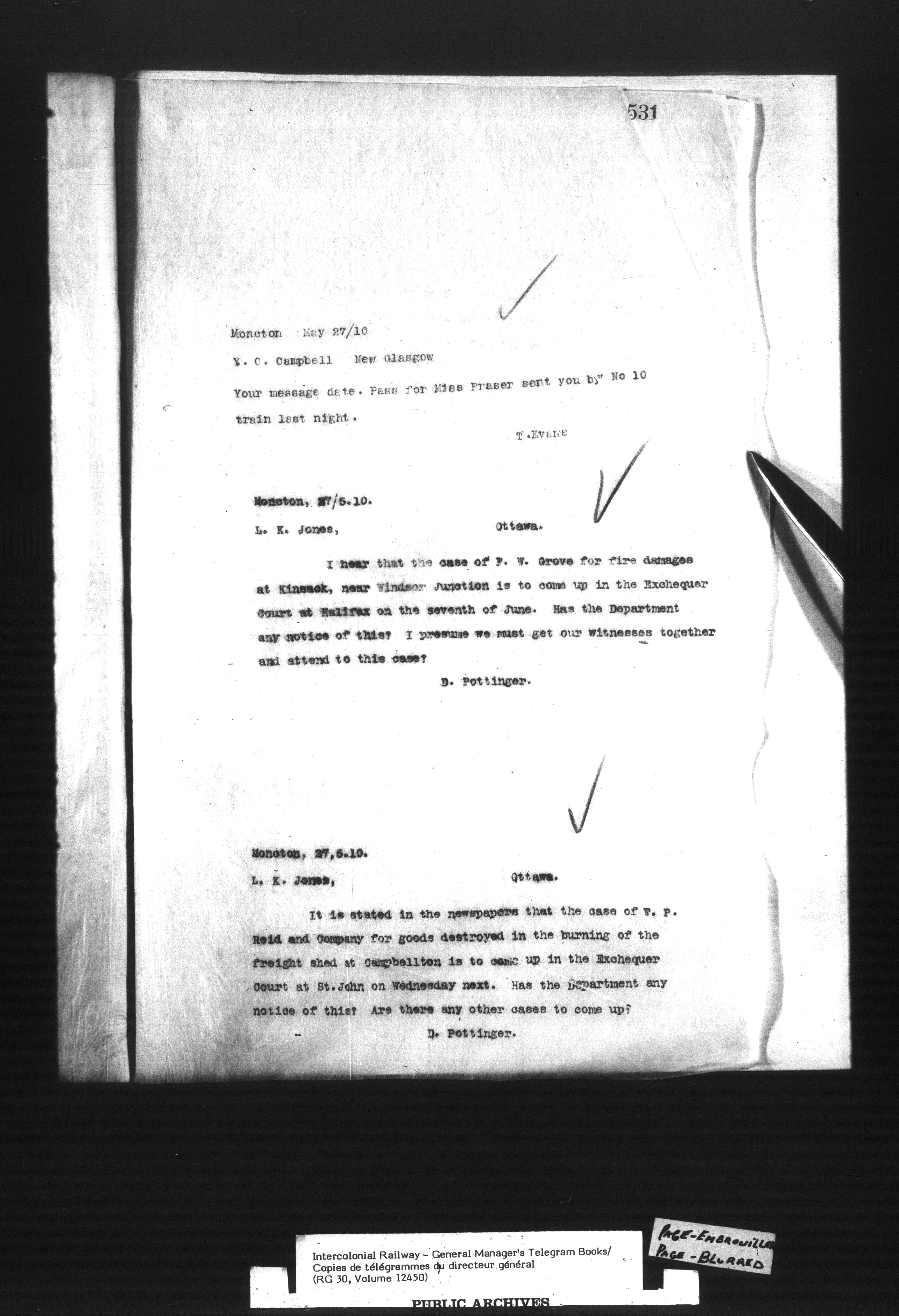 Canadian Government Railways : Office of the General Manager, Copies of telegrams - 13445