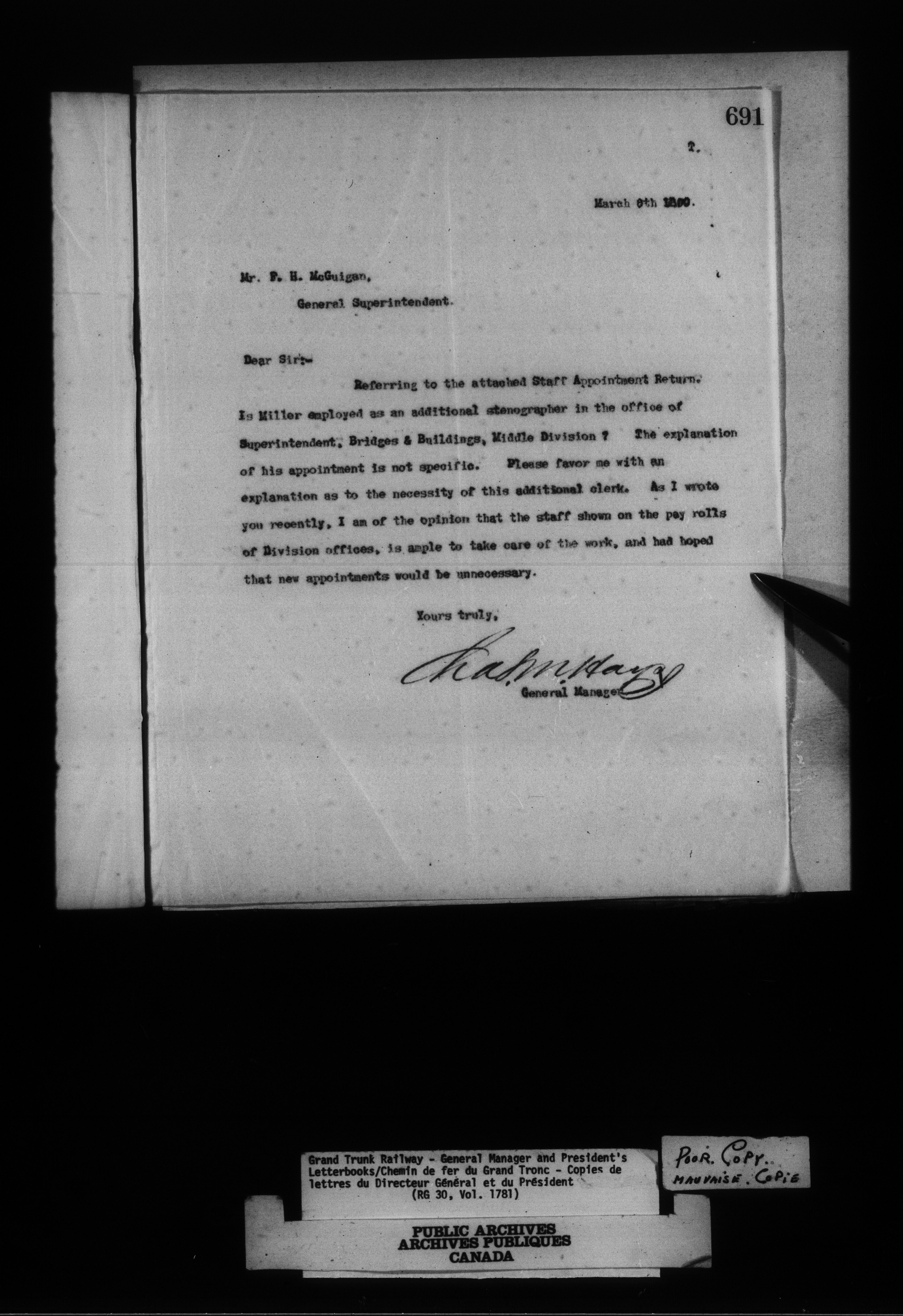 Canadian Government Railways : Grand Trunk Railway, correspondence, letterbooks and telegram books - 13450