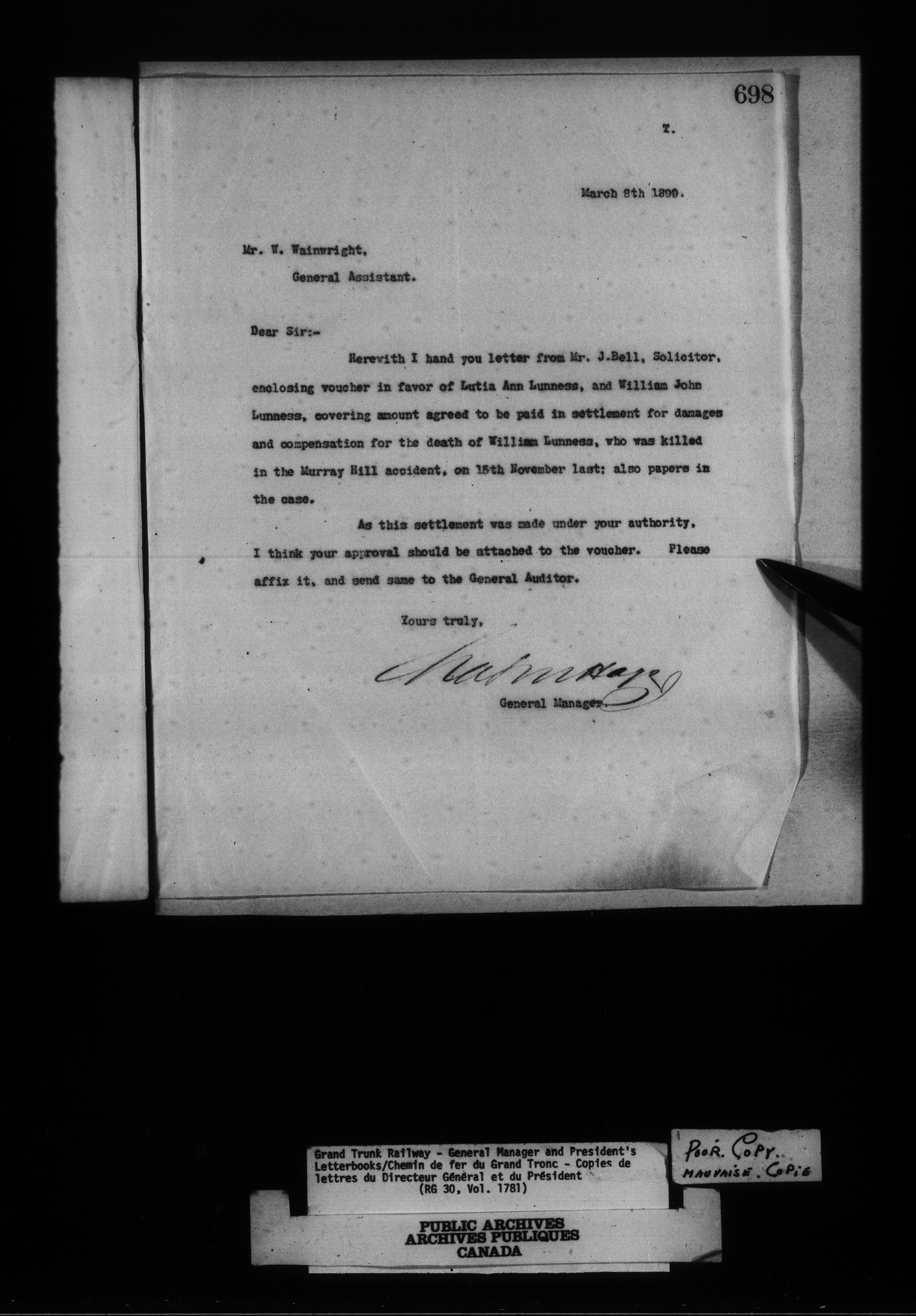 Canadian Government Railways : Grand Trunk Railway, correspondence, letterbooks and telegram books - 13450