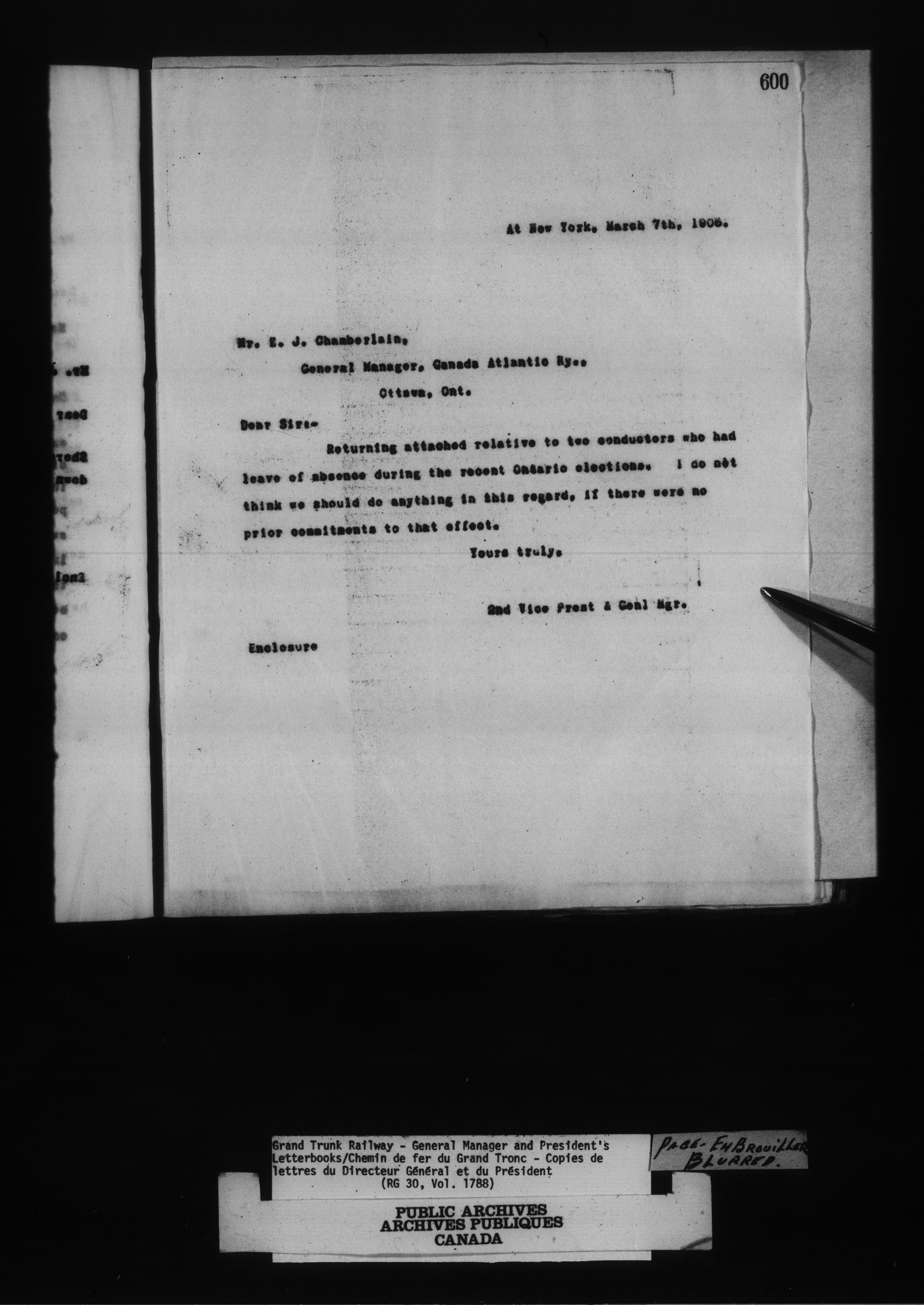 Canadian Government Railways : Grand Trunk Railway, correspondence, letterbooks and telegram books - 13455