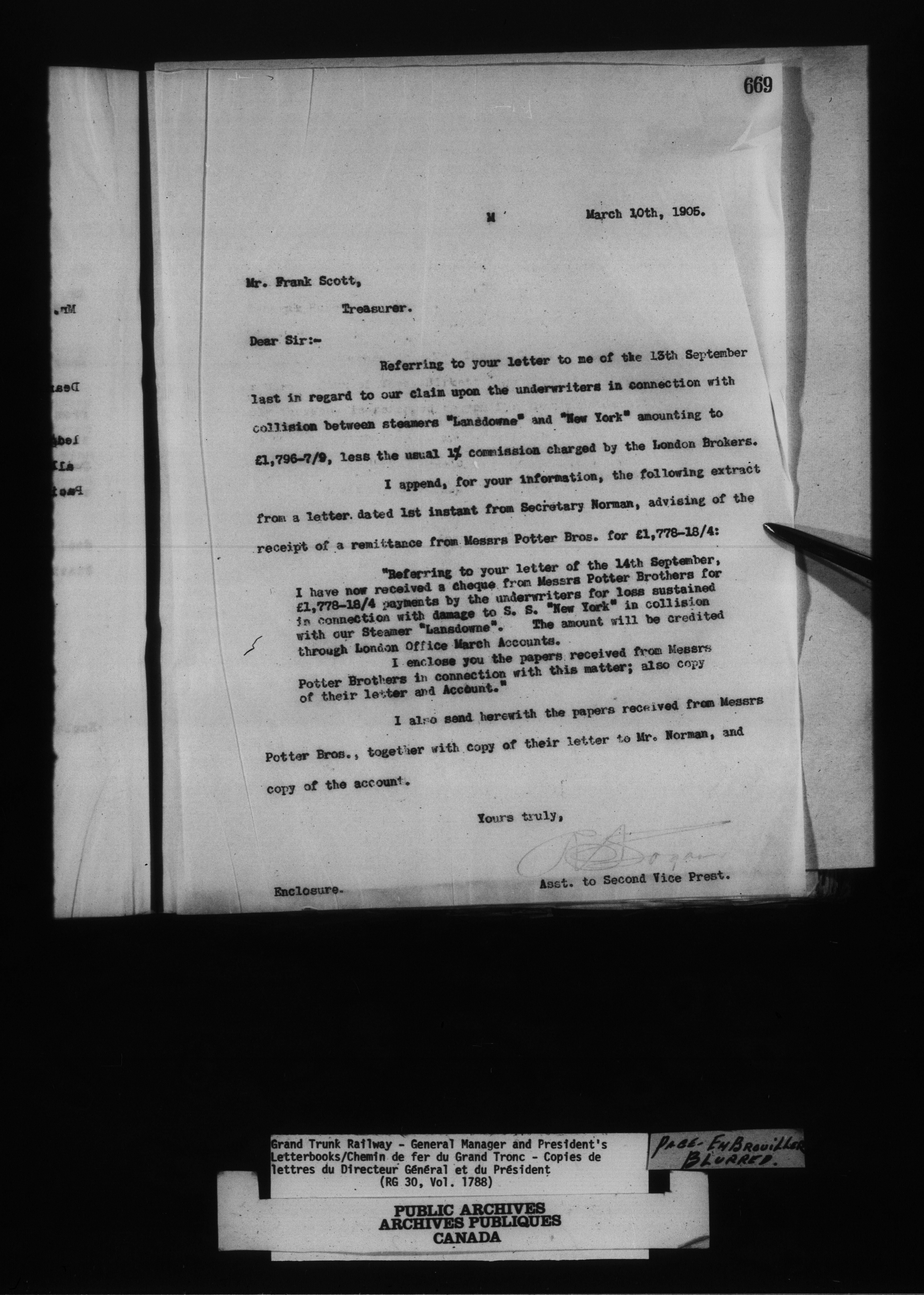 Canadian Government Railways : Grand Trunk Railway, correspondence, letterbooks and telegram books - 13455