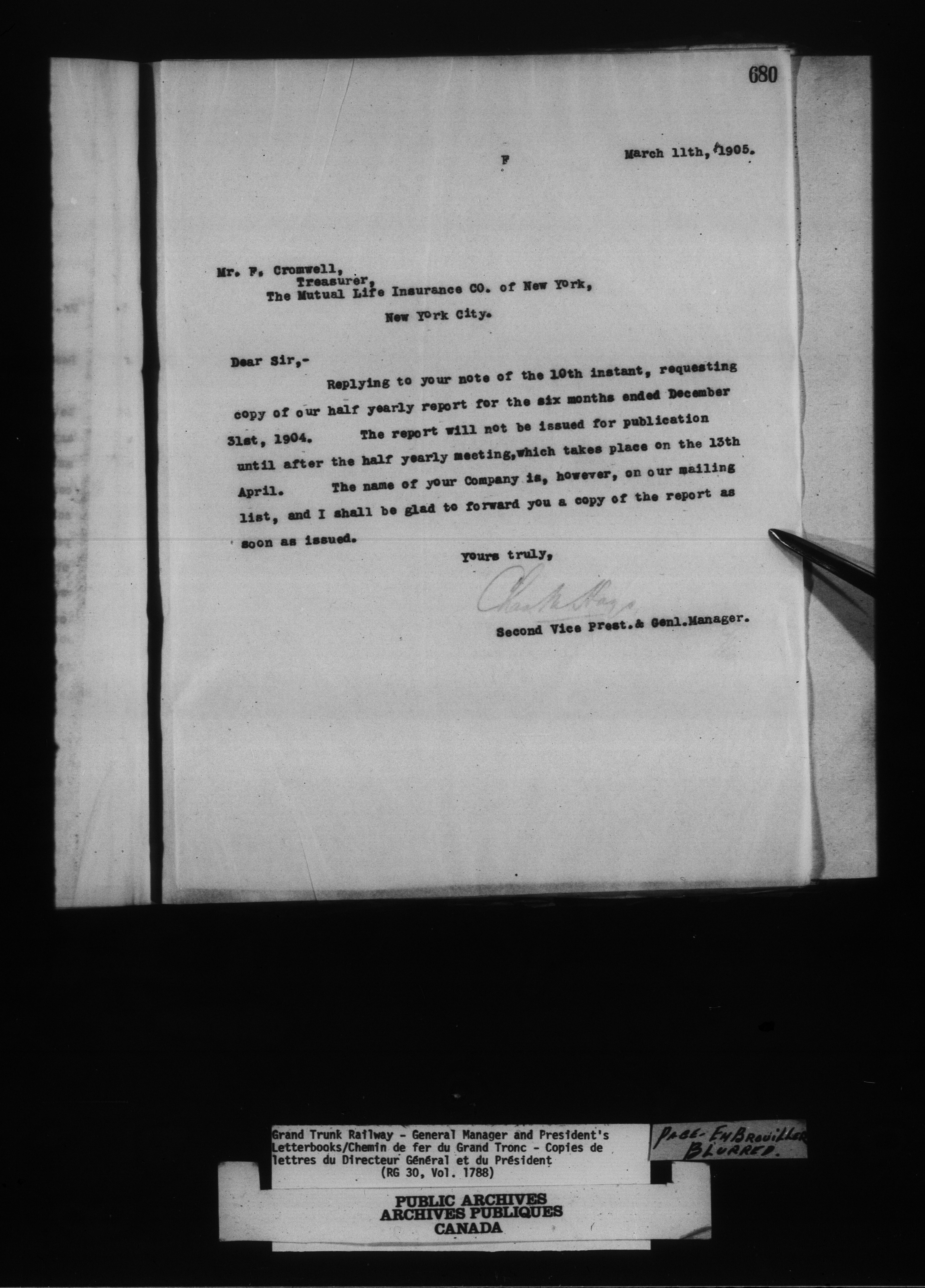 Canadian Government Railways : Grand Trunk Railway, correspondence, letterbooks and telegram books - 13455