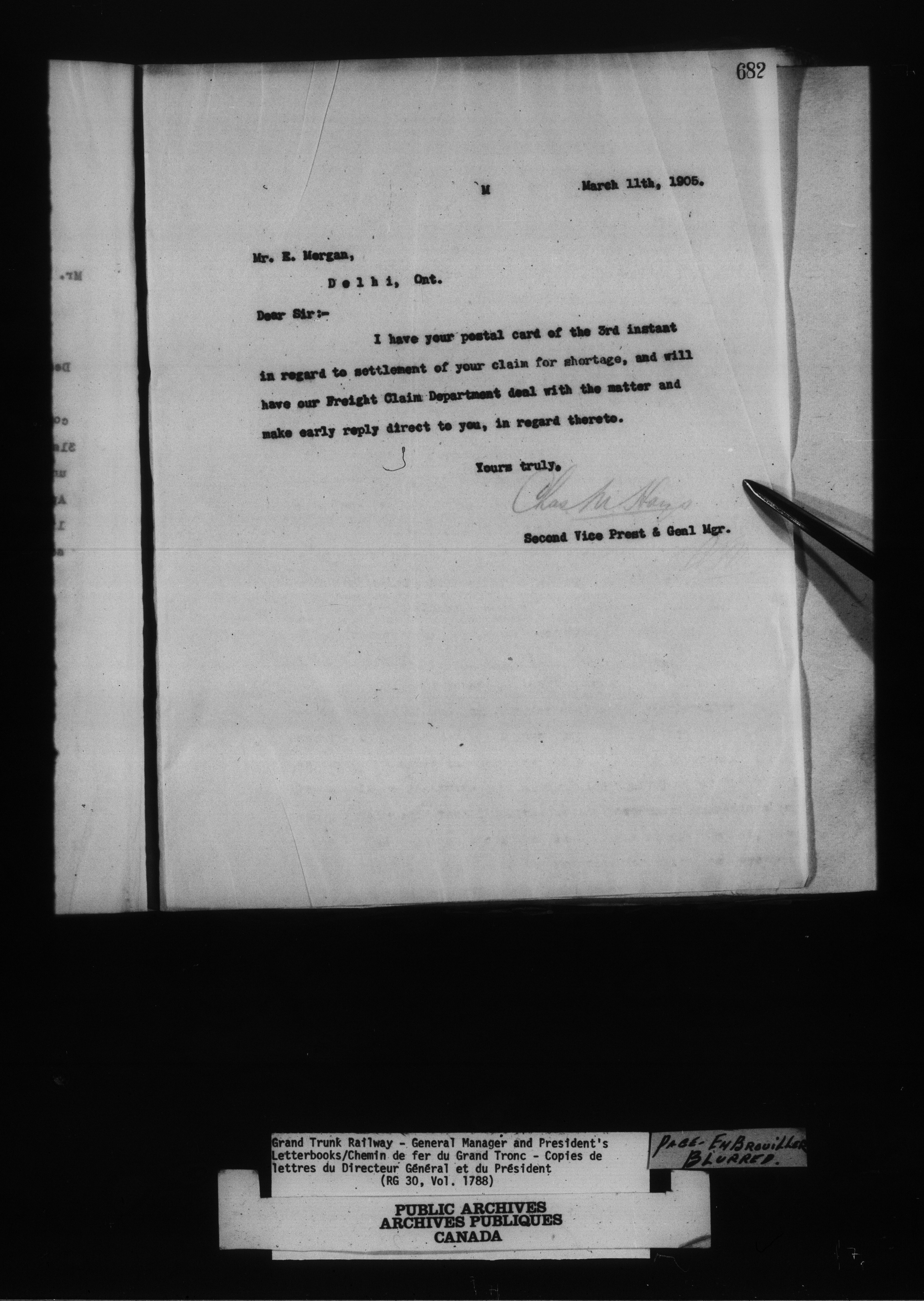 Canadian Government Railways : Grand Trunk Railway, correspondence, letterbooks and telegram books - 13455