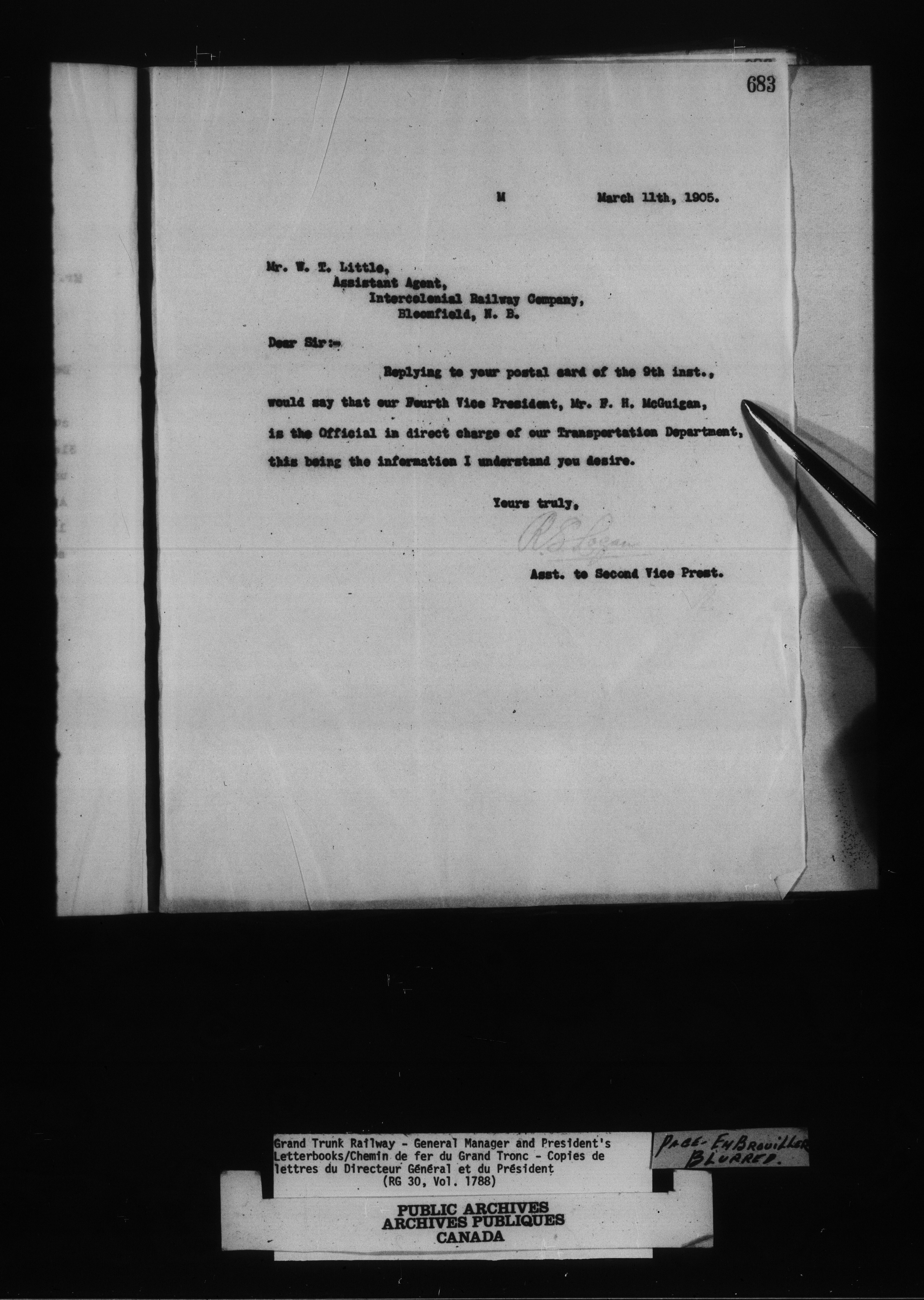 Canadian Government Railways : Grand Trunk Railway, correspondence, letterbooks and telegram books - 13455