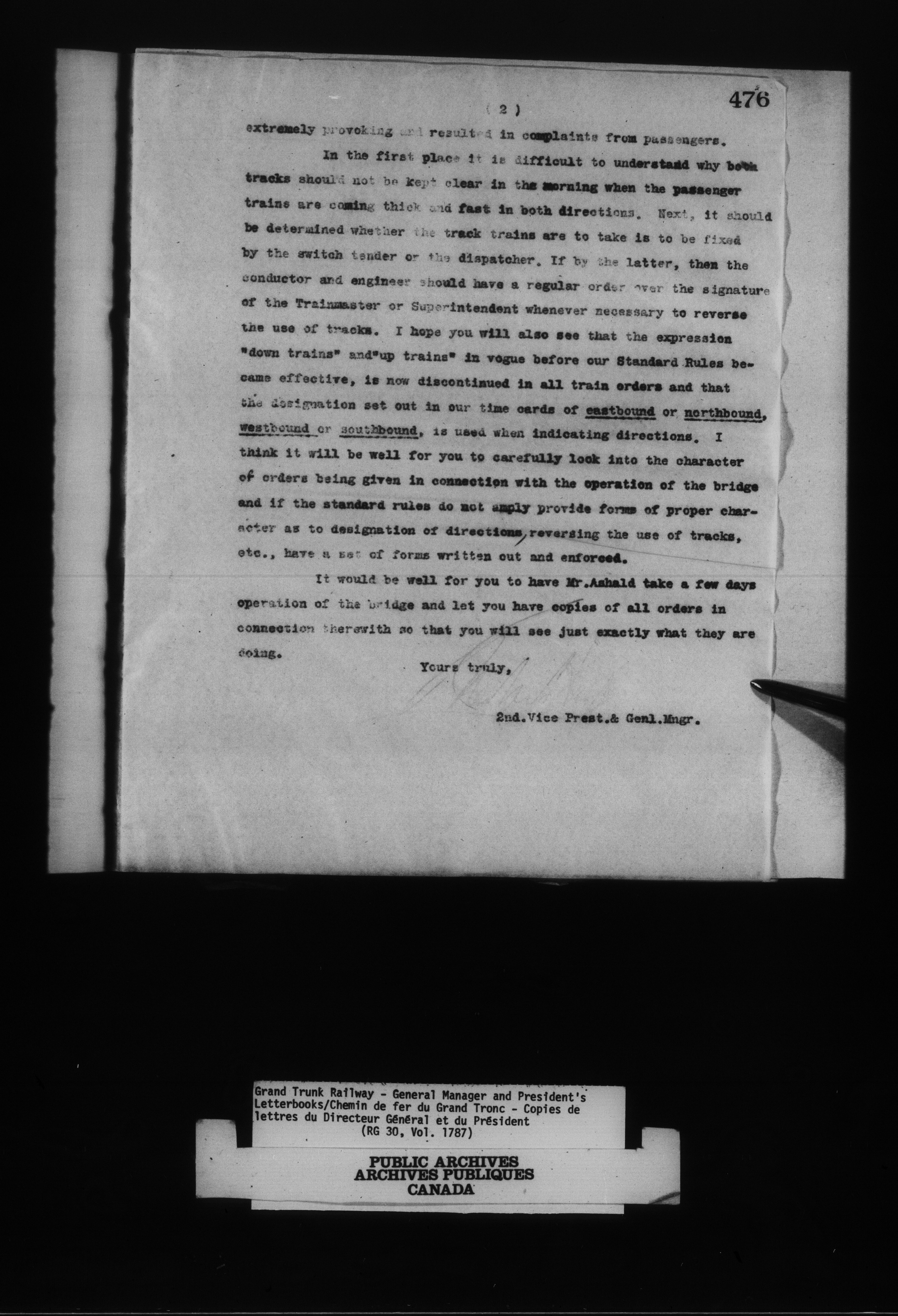 Canadian Government Railways : Grand Trunk Railway, correspondence, letterbooks and telegram books - 13455
