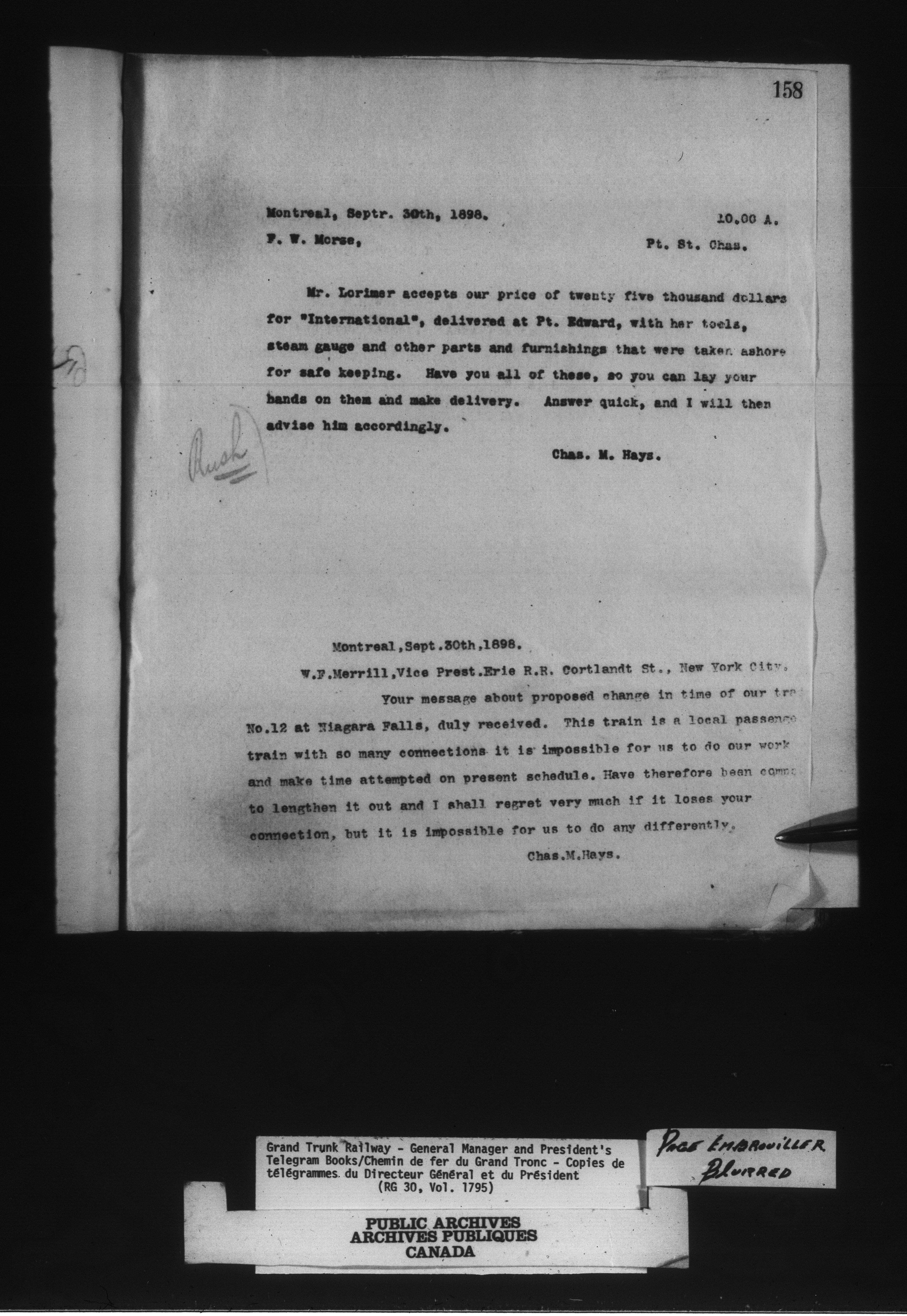 Canadian Government Railways : Grand Trunk Railway, correspondence, letterbooks and telegram books - 13460
