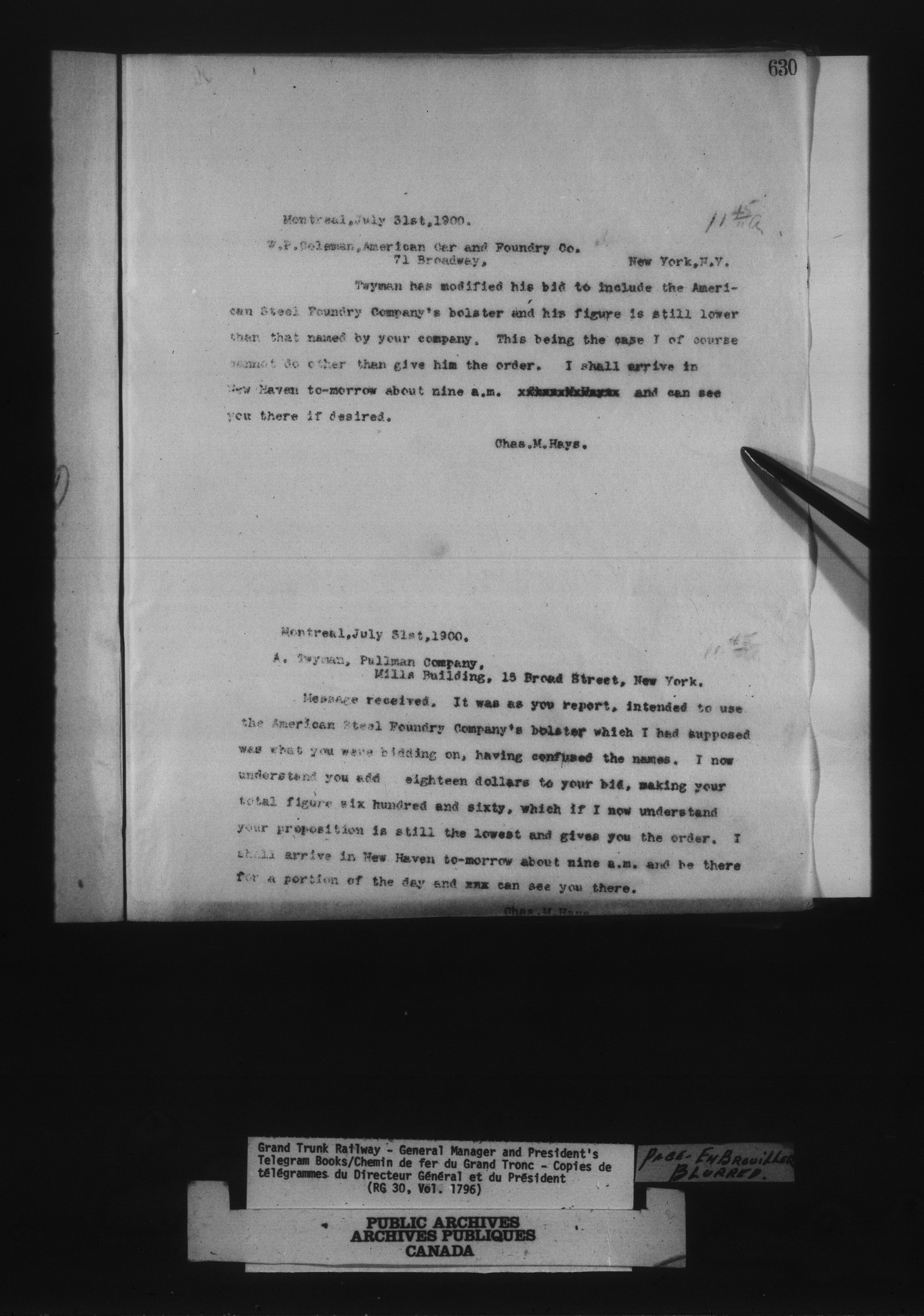 Canadian Government Railways : Grand Trunk Railway, correspondence, letterbooks and telegram books - 13461