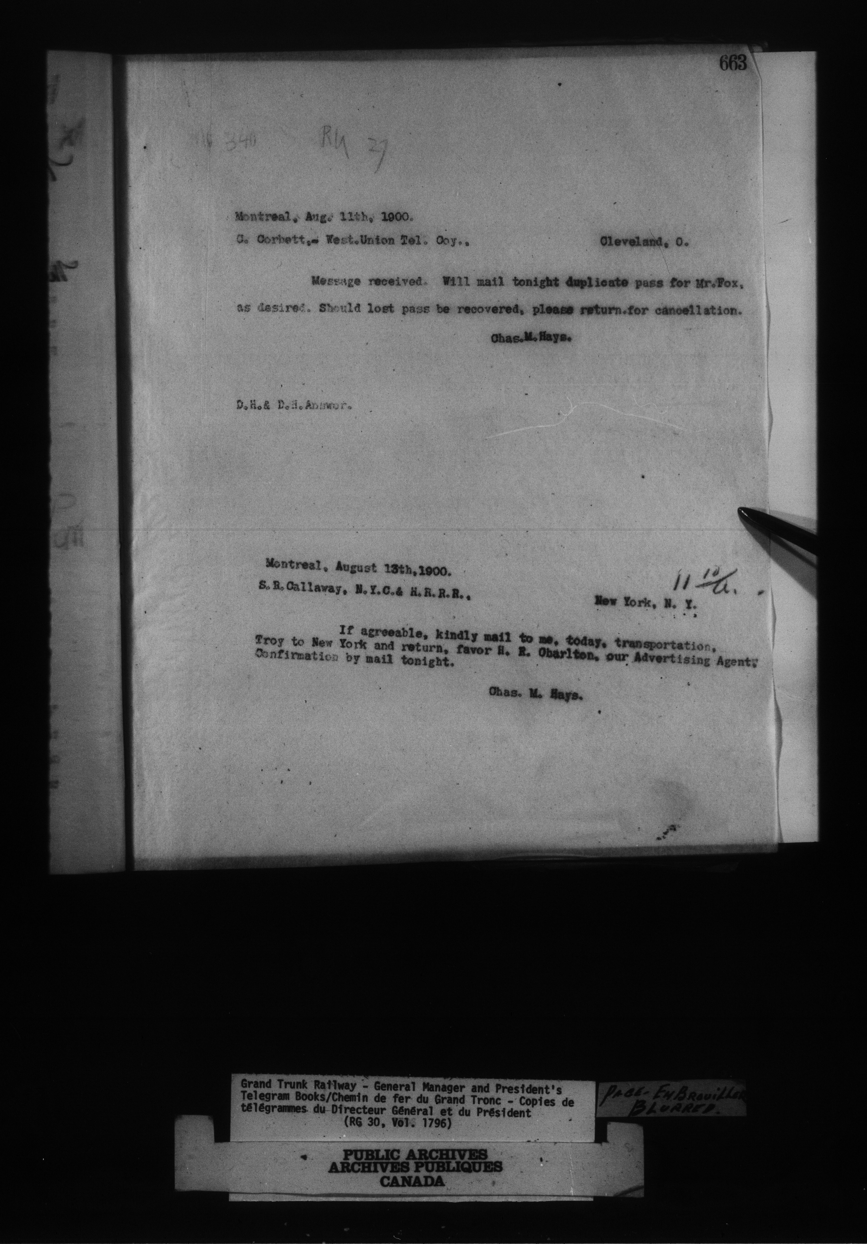 Canadian Government Railways : Grand Trunk Railway, correspondence, letterbooks and telegram books - 13461