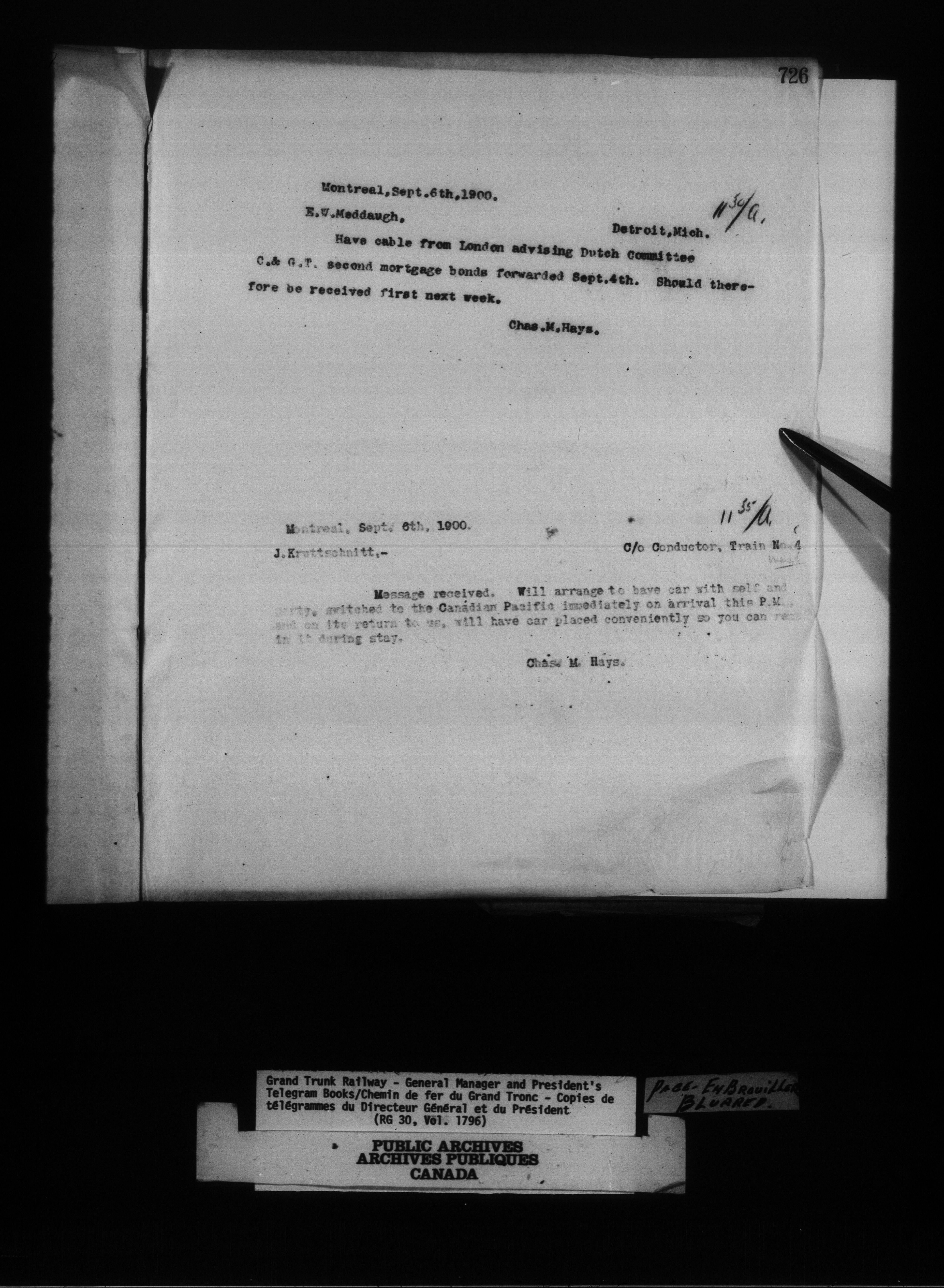 Canadian Government Railways : Grand Trunk Railway, correspondence, letterbooks and telegram books - 13462