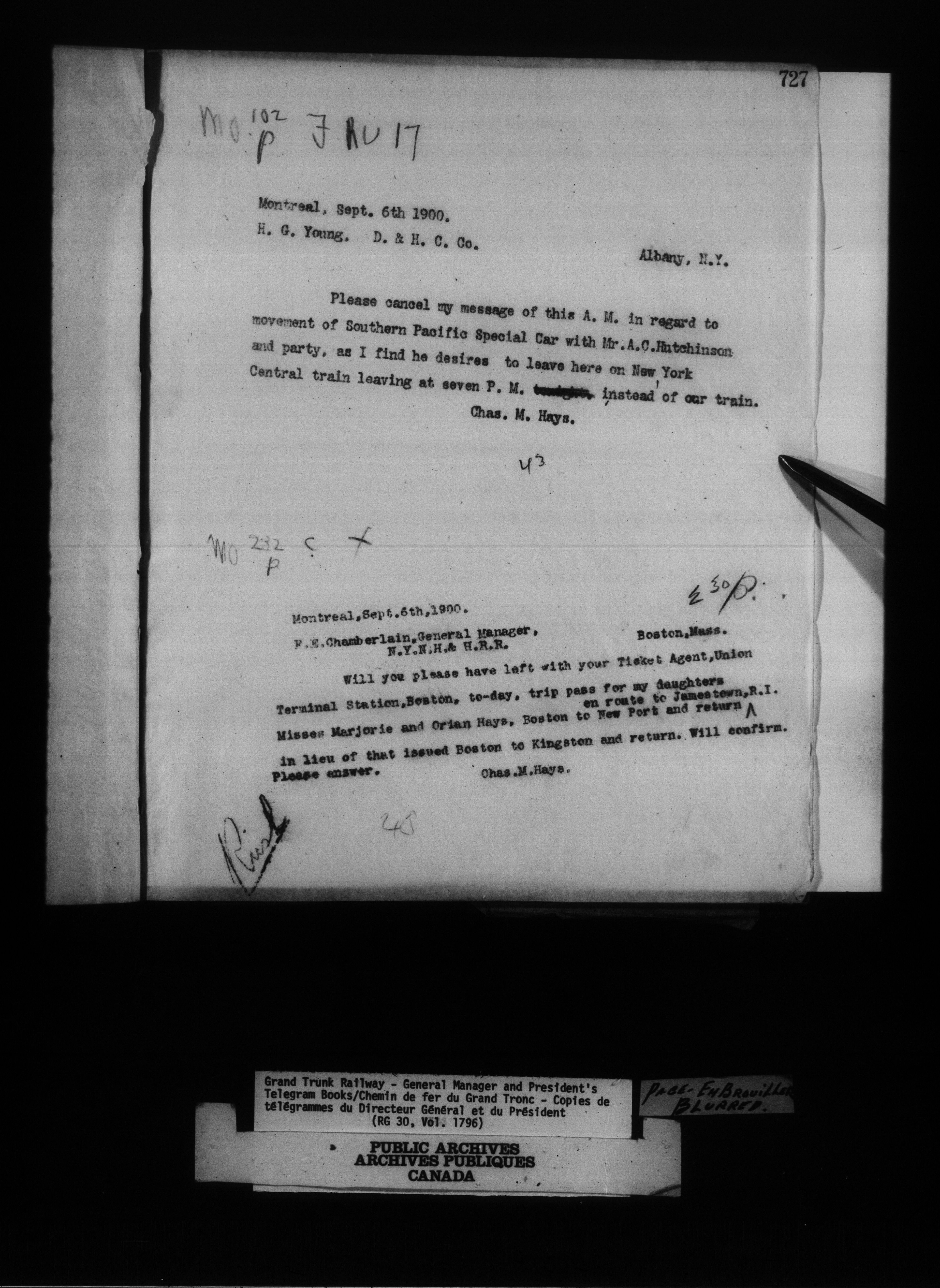 Canadian Government Railways : Grand Trunk Railway, correspondence, letterbooks and telegram books - 13462