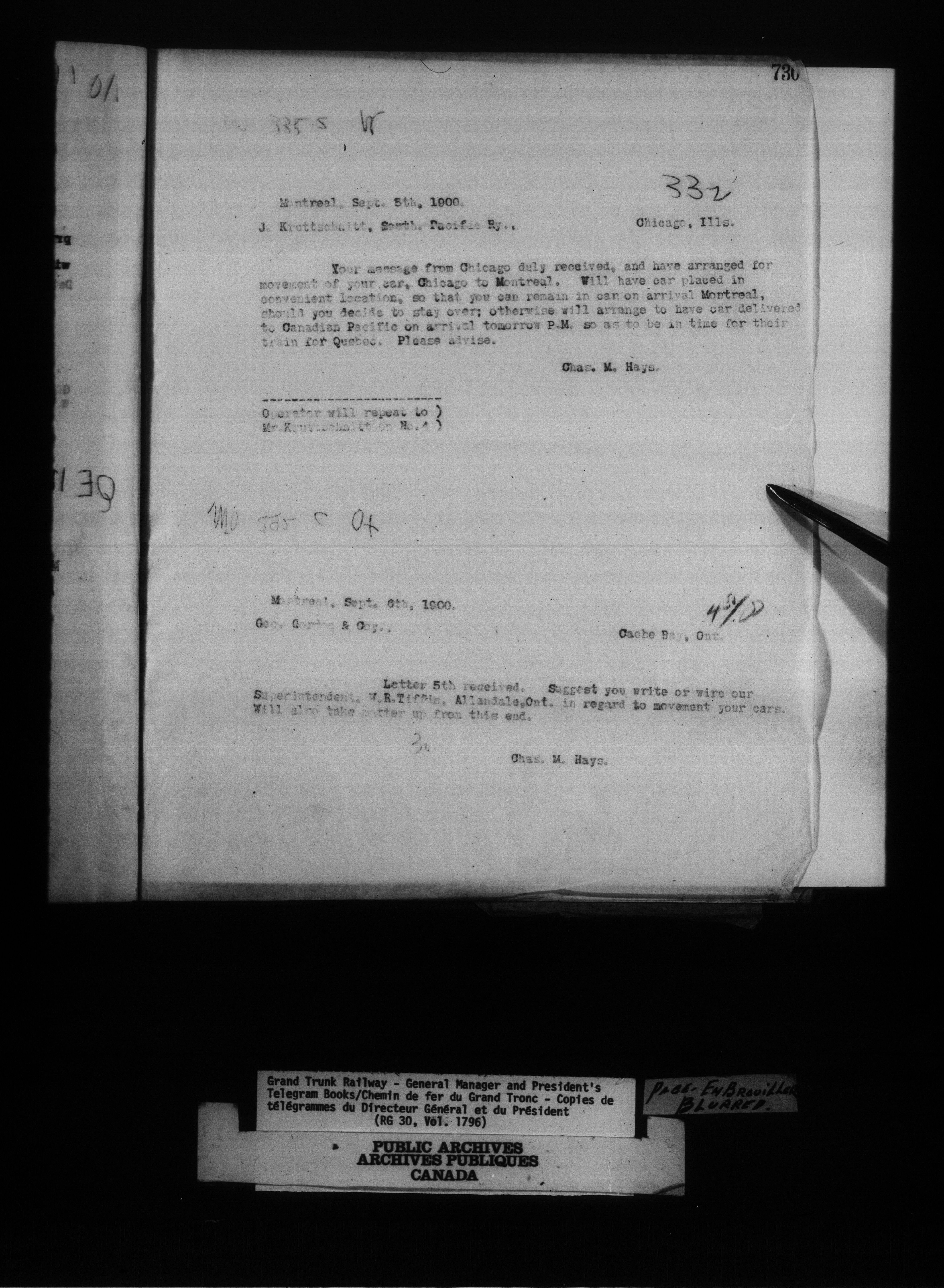 Canadian Government Railways : Grand Trunk Railway, correspondence, letterbooks and telegram books - 13462