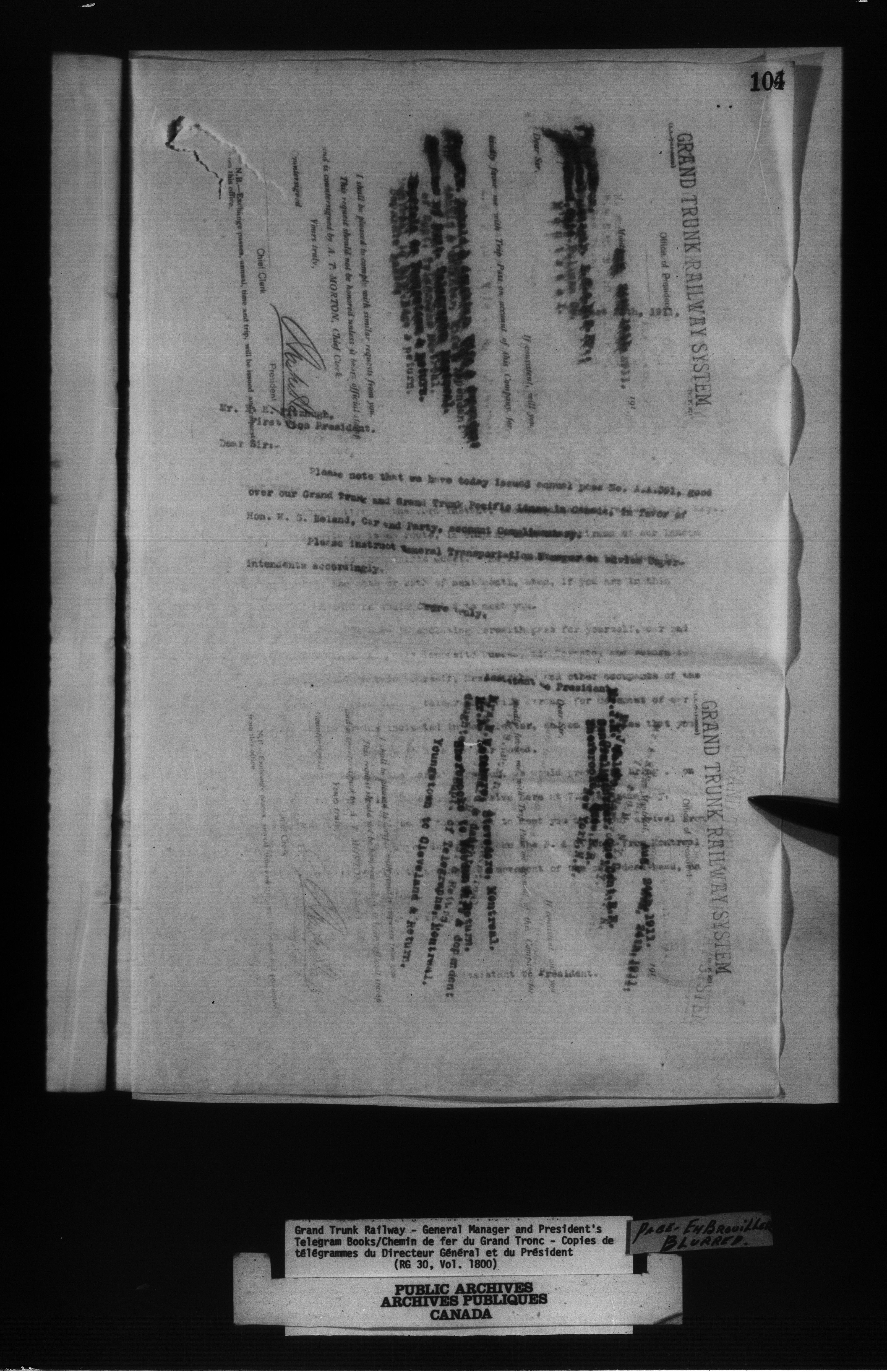 Canadian Government Railways : Grand Trunk Railway, correspondence, letterbooks and telegram books - 13463