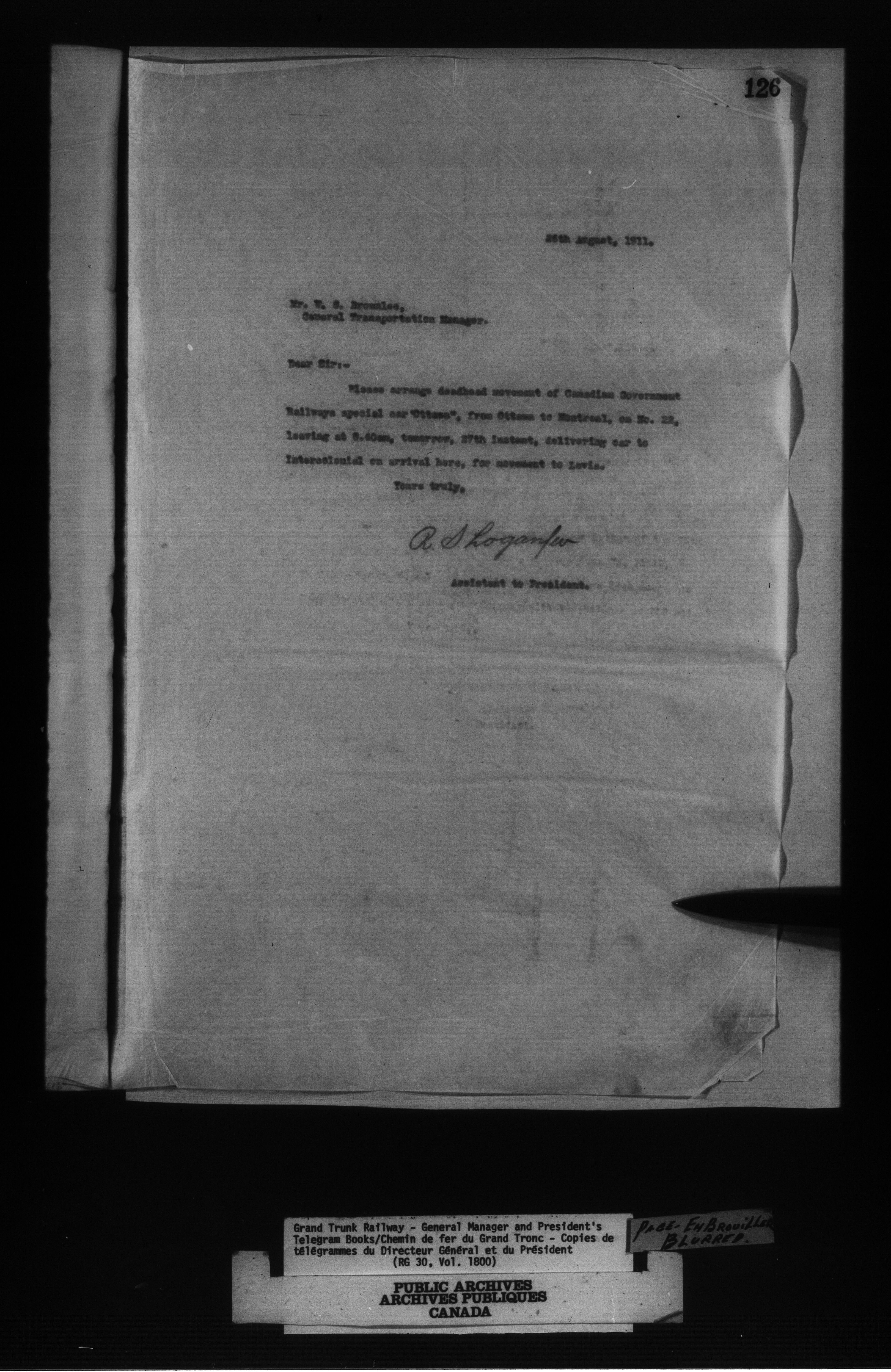 Canadian Government Railways : Grand Trunk Railway, correspondence, letterbooks and telegram books - 13463