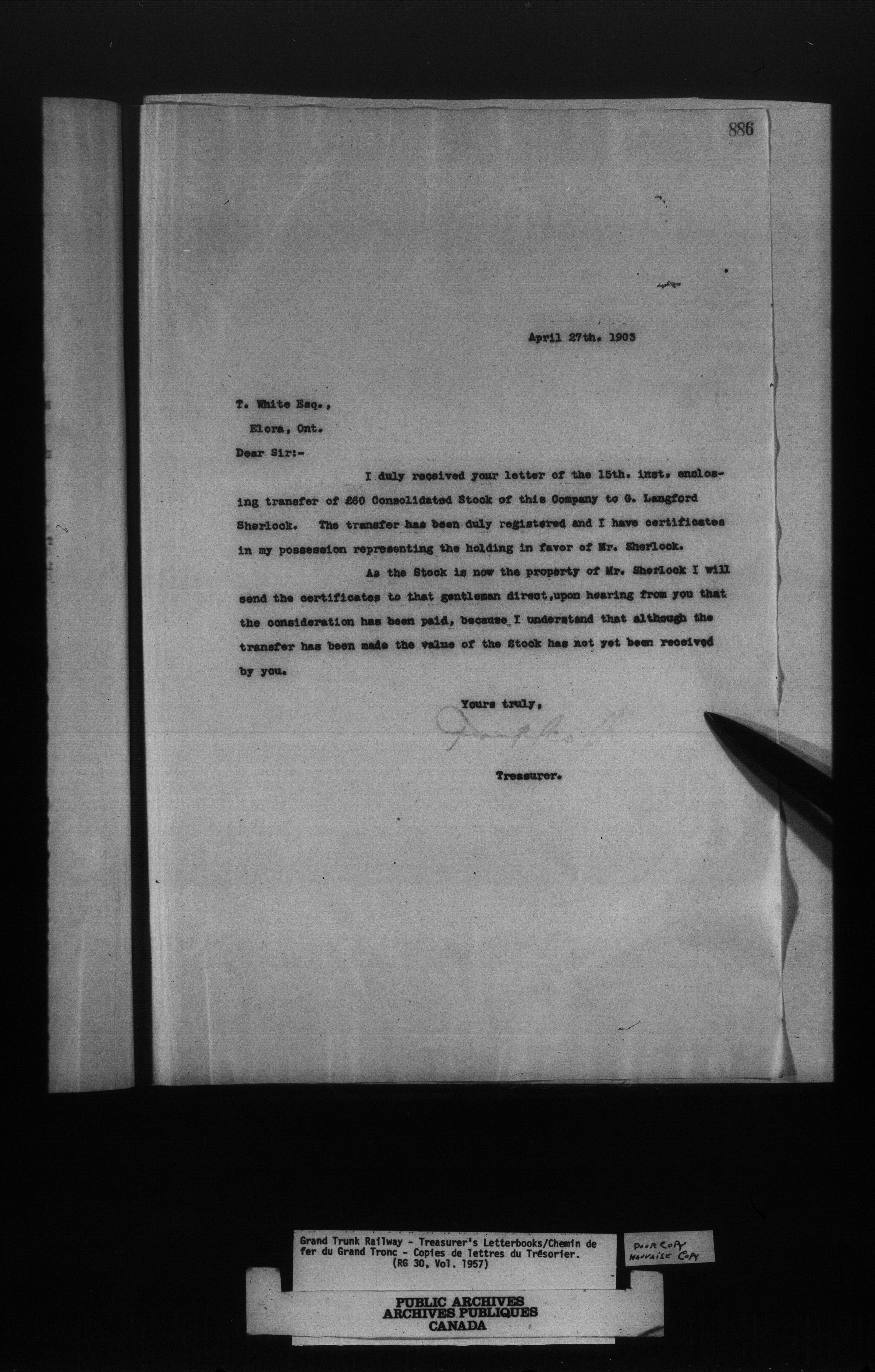 Grand Trunk Railway Company of Canada Treasurer's letterbooks : C-13466