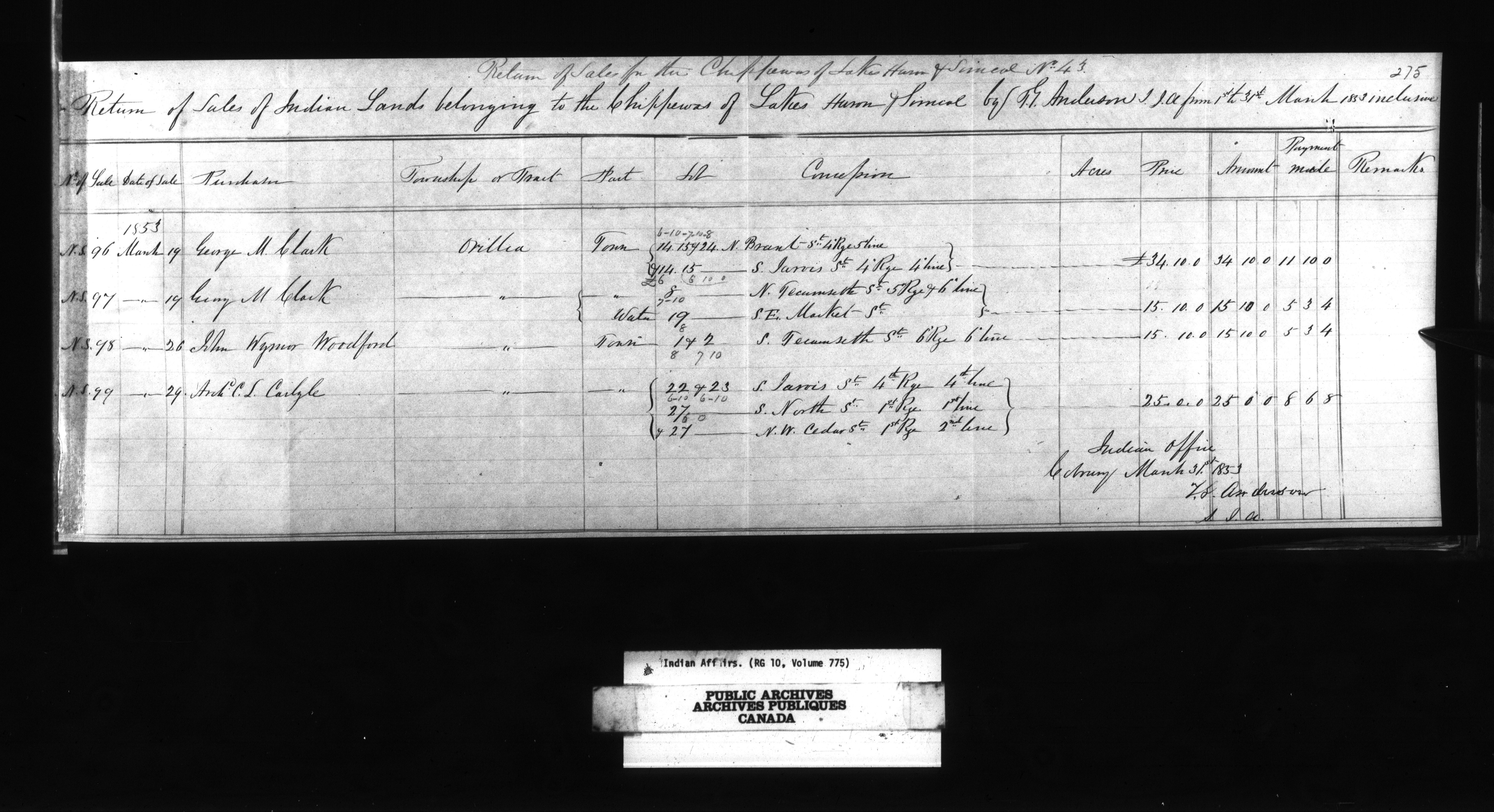 Department of Indian Affairs, Toronto office of the Central Superintendency : general land records : C-13494