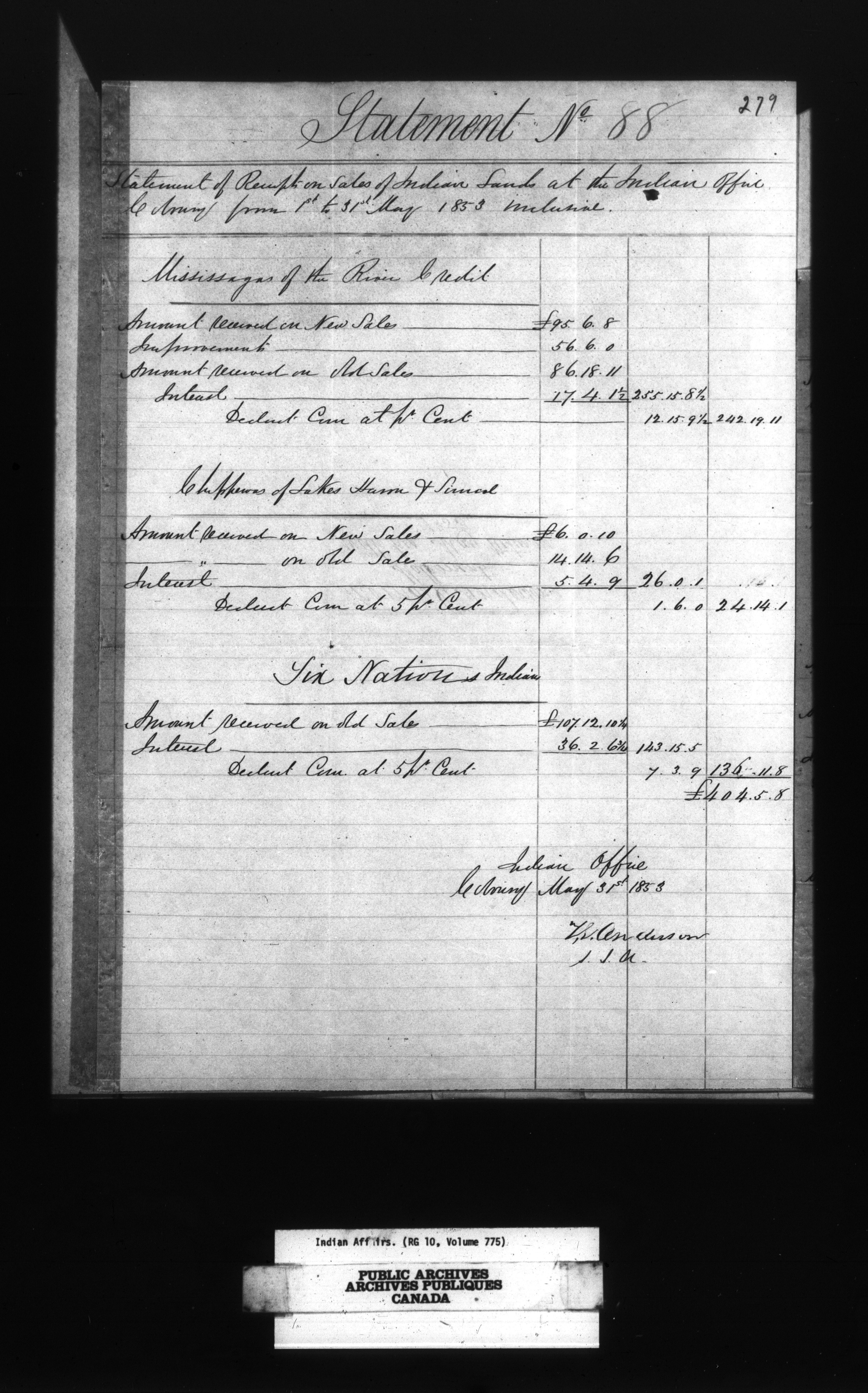 Department of Indian Affairs, Toronto office of the Central Superintendency : general land records - 13494