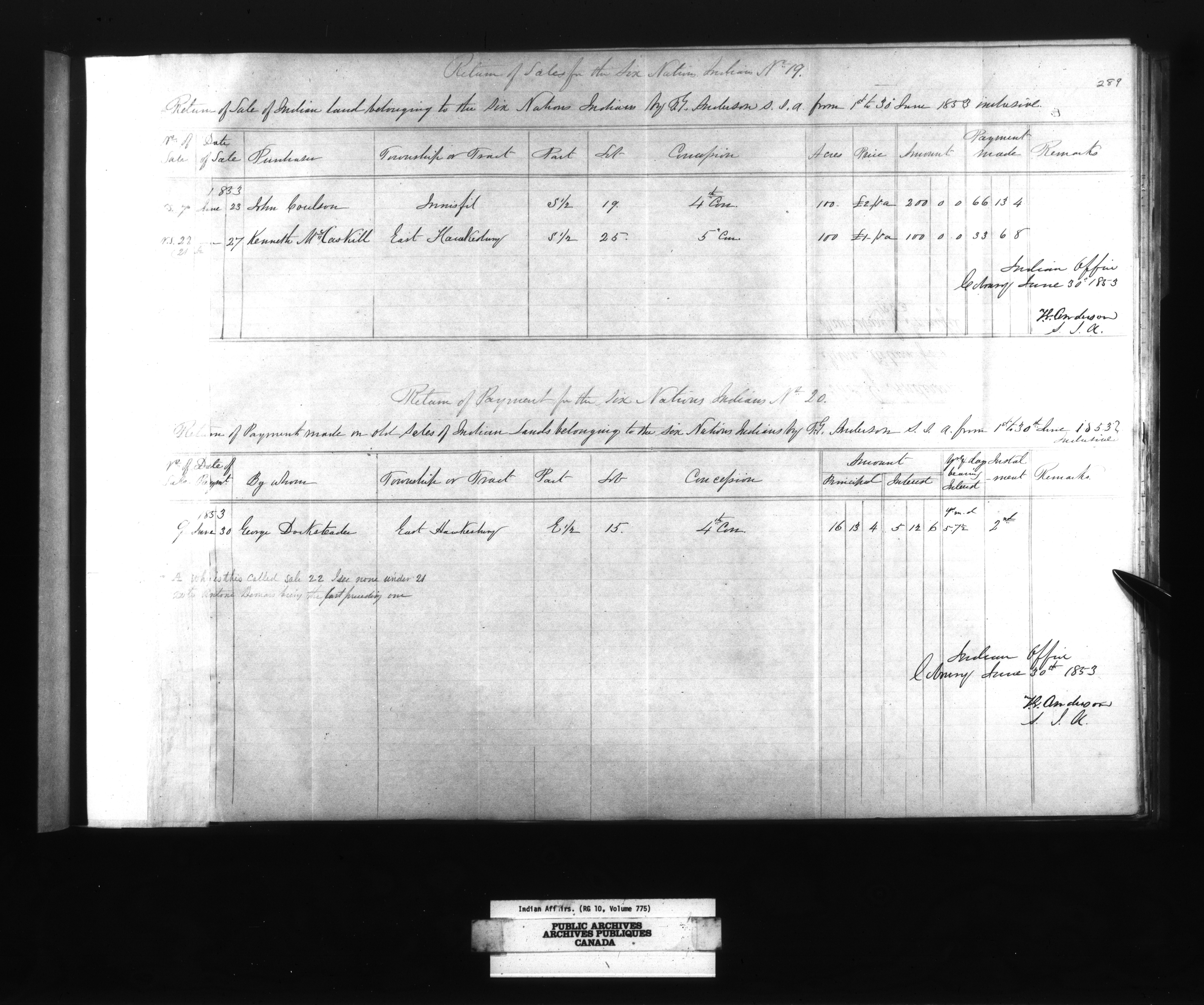 Department of Indian Affairs, Toronto office of the Central Superintendency : general land records - 13494