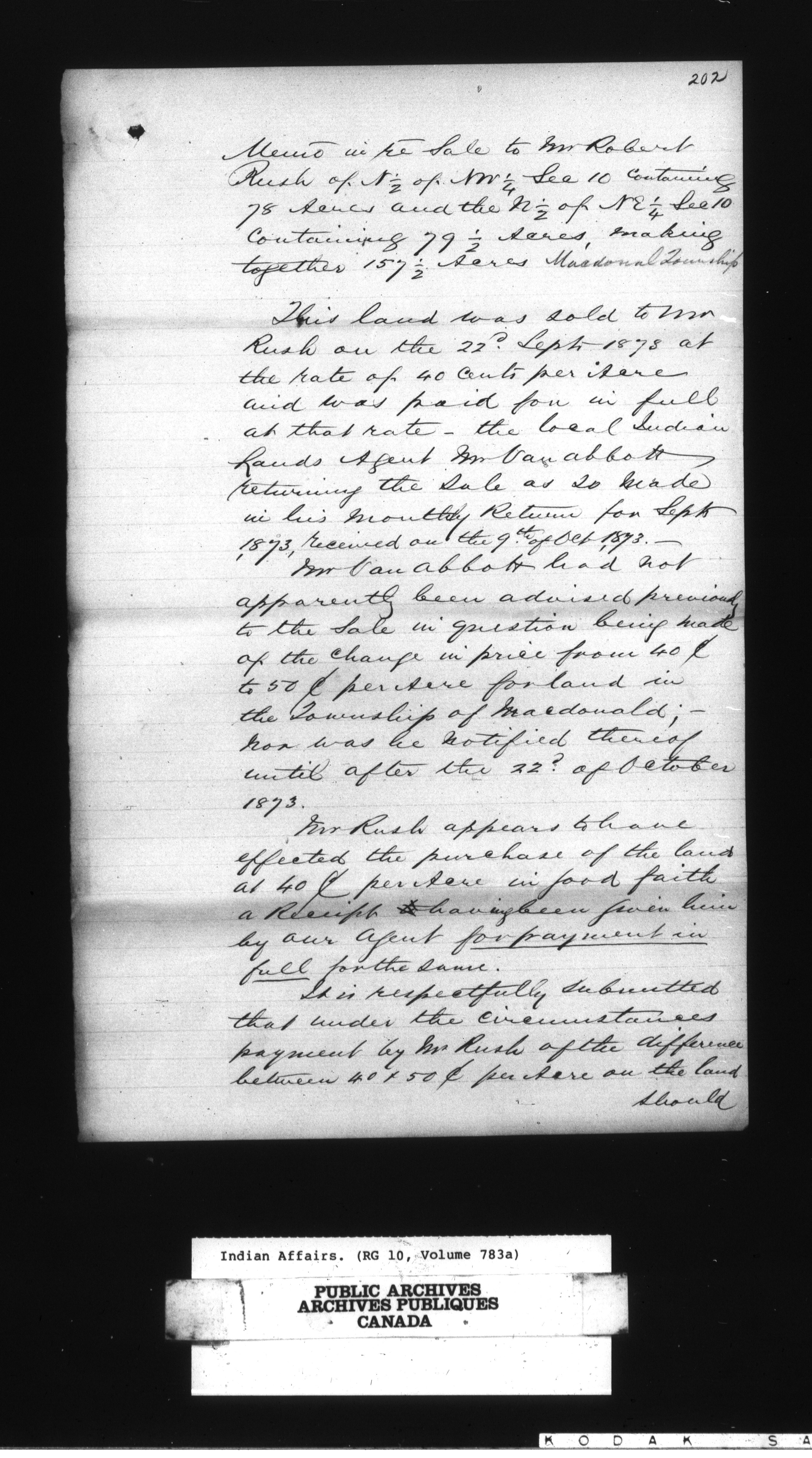 Department of Indian Affairs : Land sales, 1847-1878 - 13498