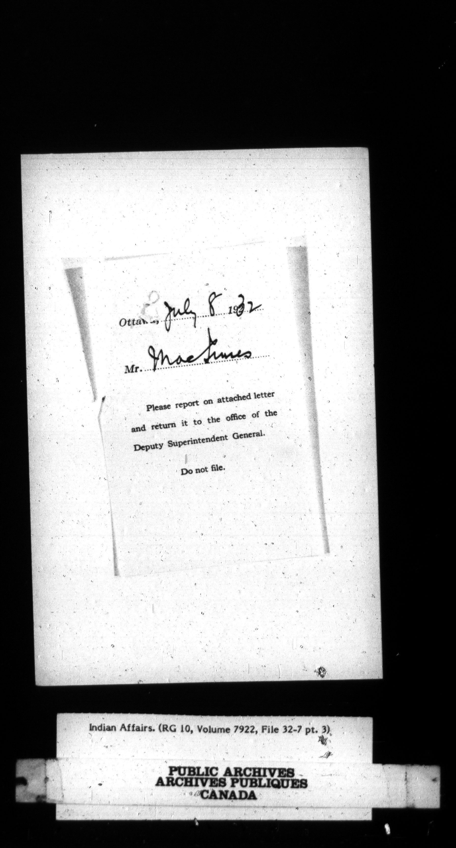 Department of Indian Affairs, Headquarters central registry system : First series - 13501