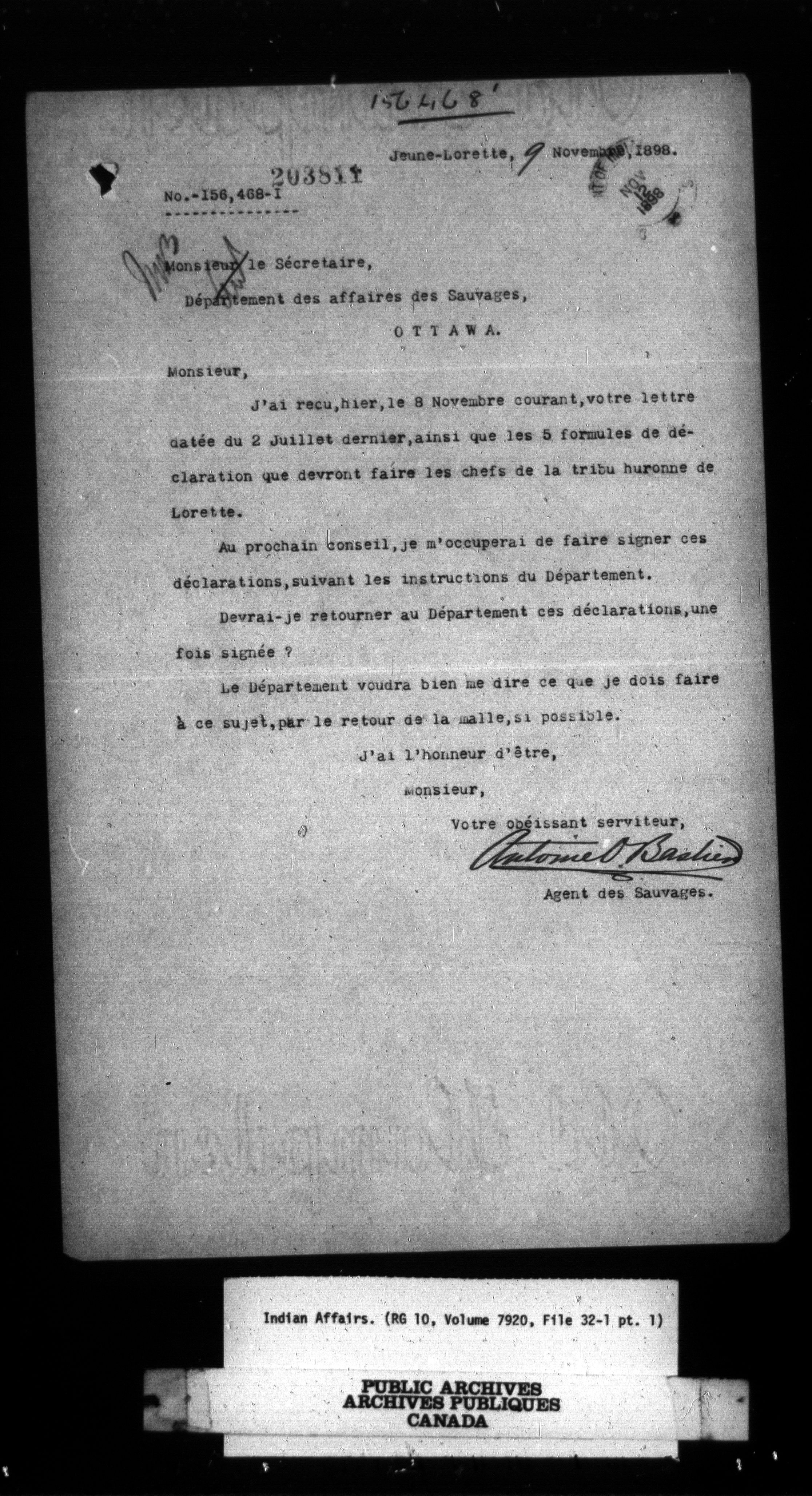 Department of Indian Affairs, Headquarters central registry system : First series - 13501