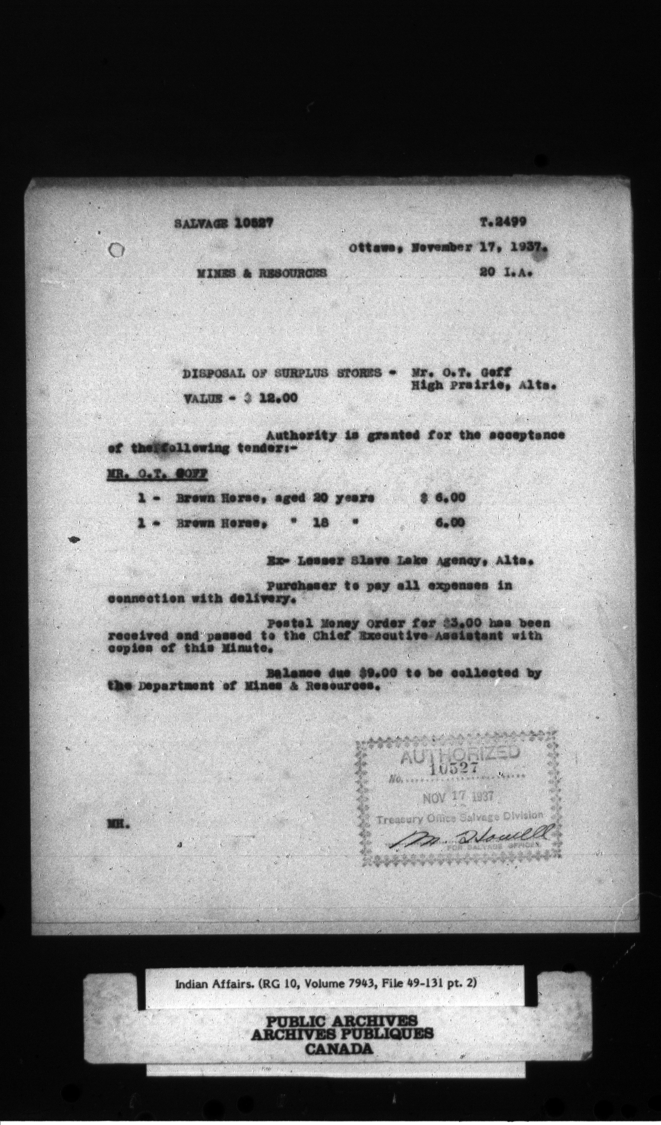 Department of Indian Affairs, Headquarters central registry system : First series : C-13512