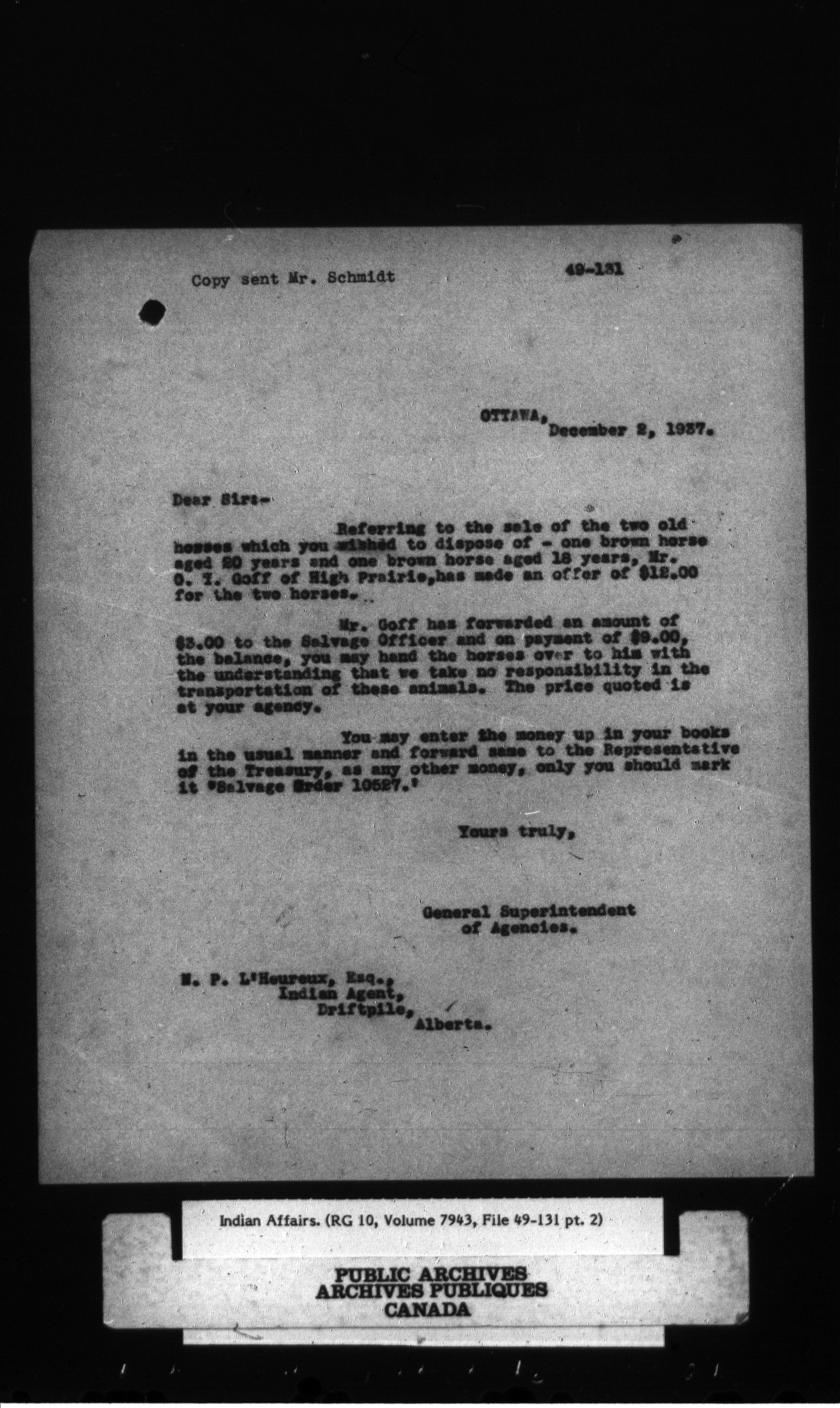 Department of Indian Affairs, Headquarters central registry system : First series : C-13512