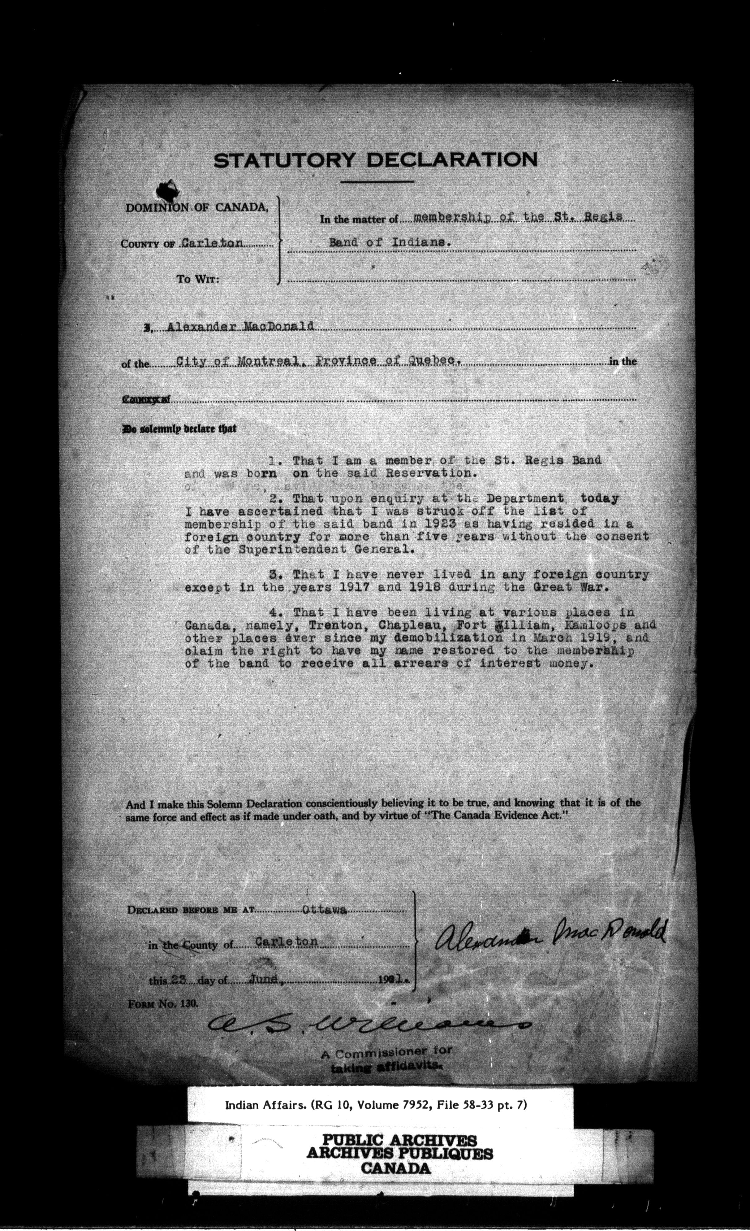 Department of Indian Affairs, Headquarters central registry system : First series - 13513