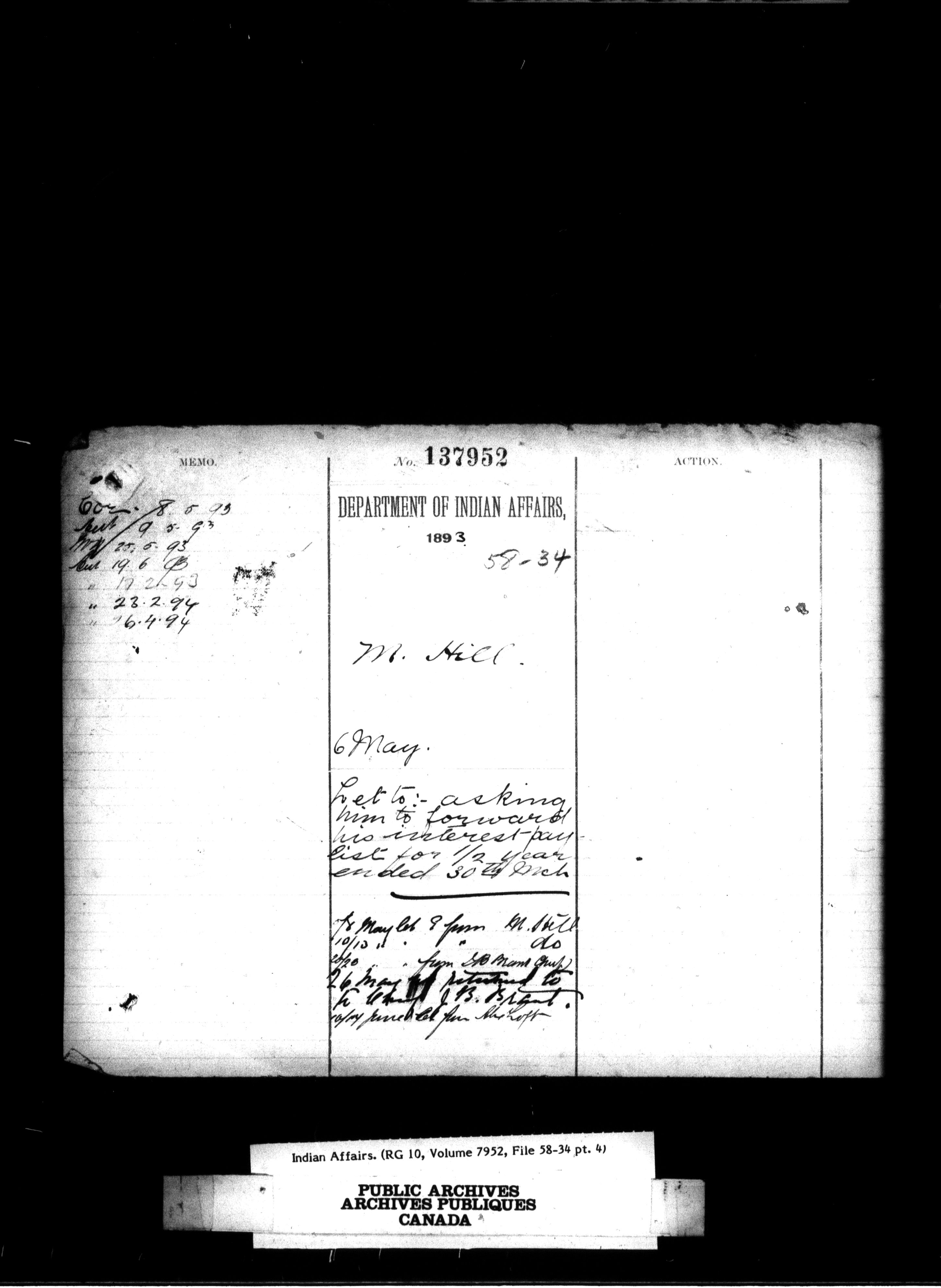 Department of Indian Affairs, Headquarters central registry system : First series - 13513