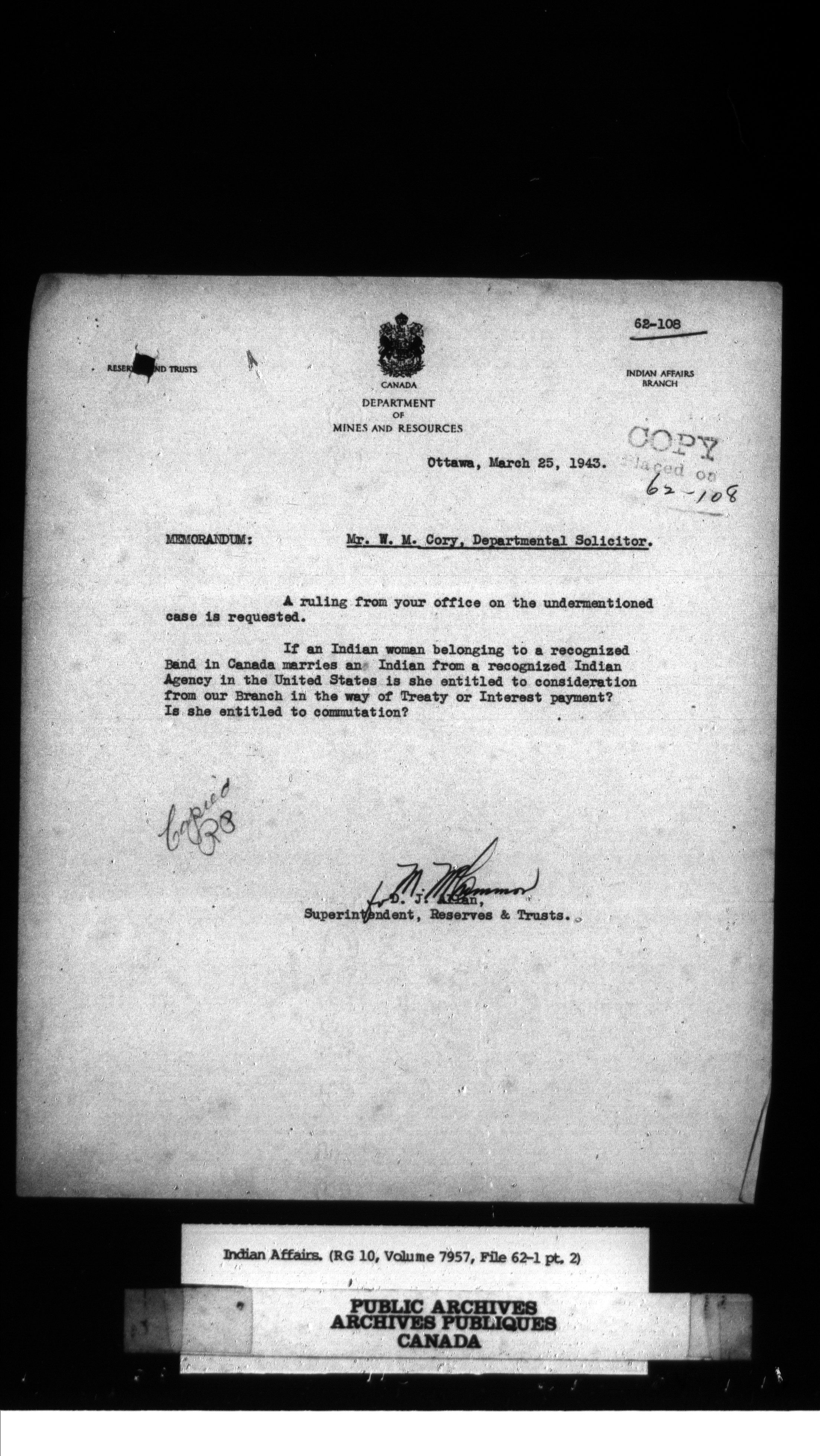 Department of Indian Affairs, Headquarters central registry system : First series - 13514