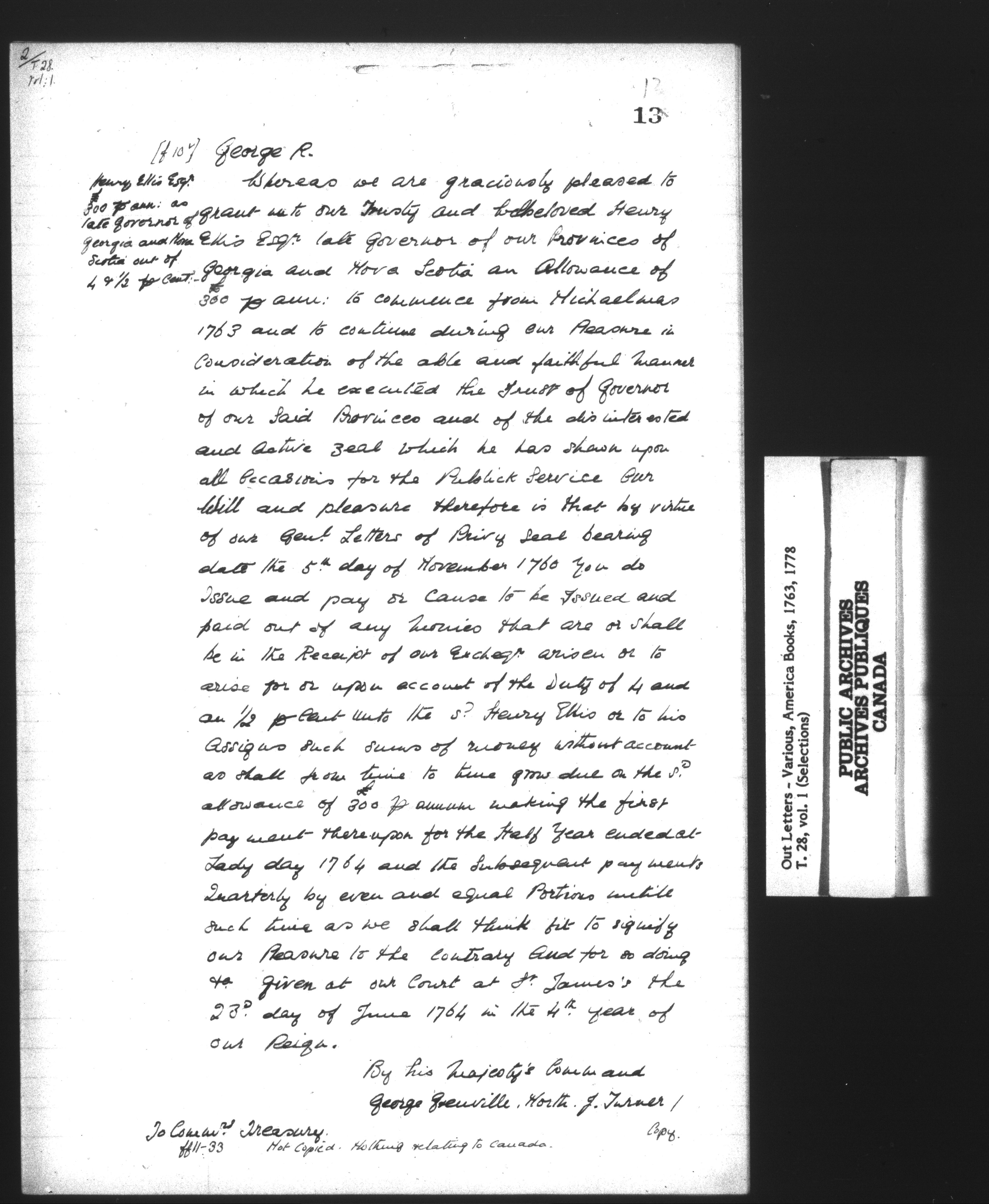 Treasury Fonds : T 28. Various Out-letters : C-13523