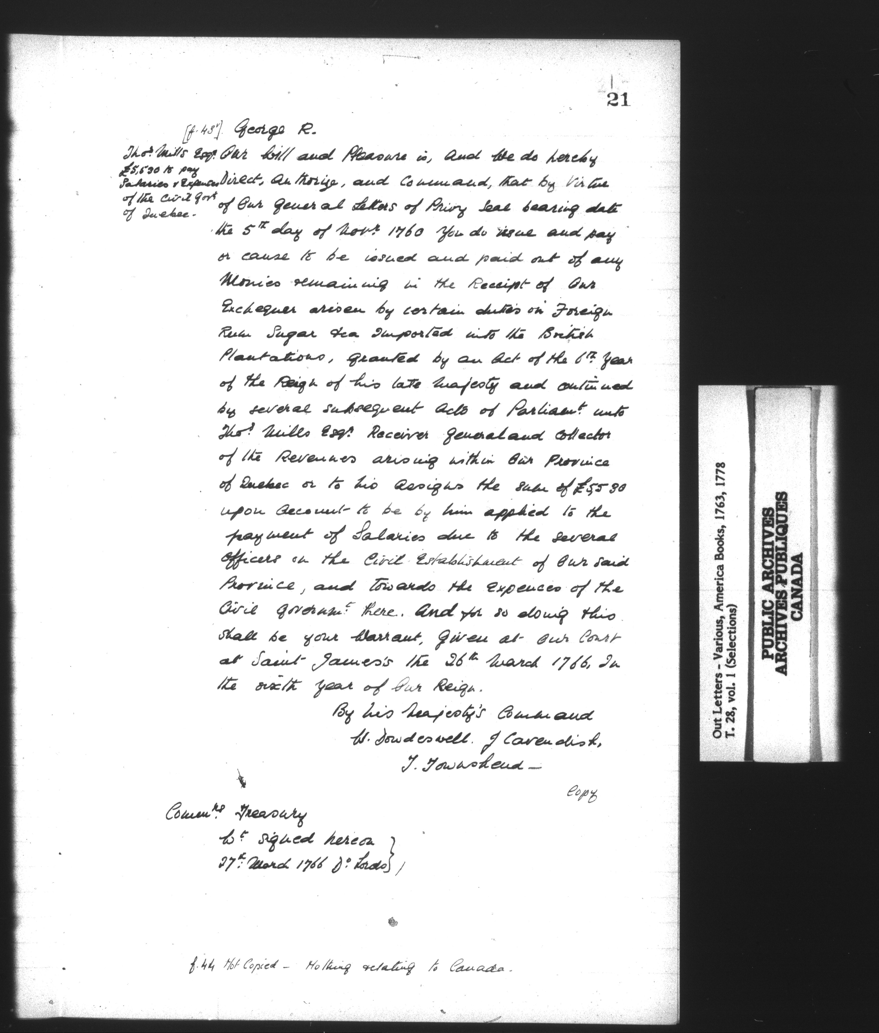 Treasury Fonds : T 28. Various Out-letters : C-13523