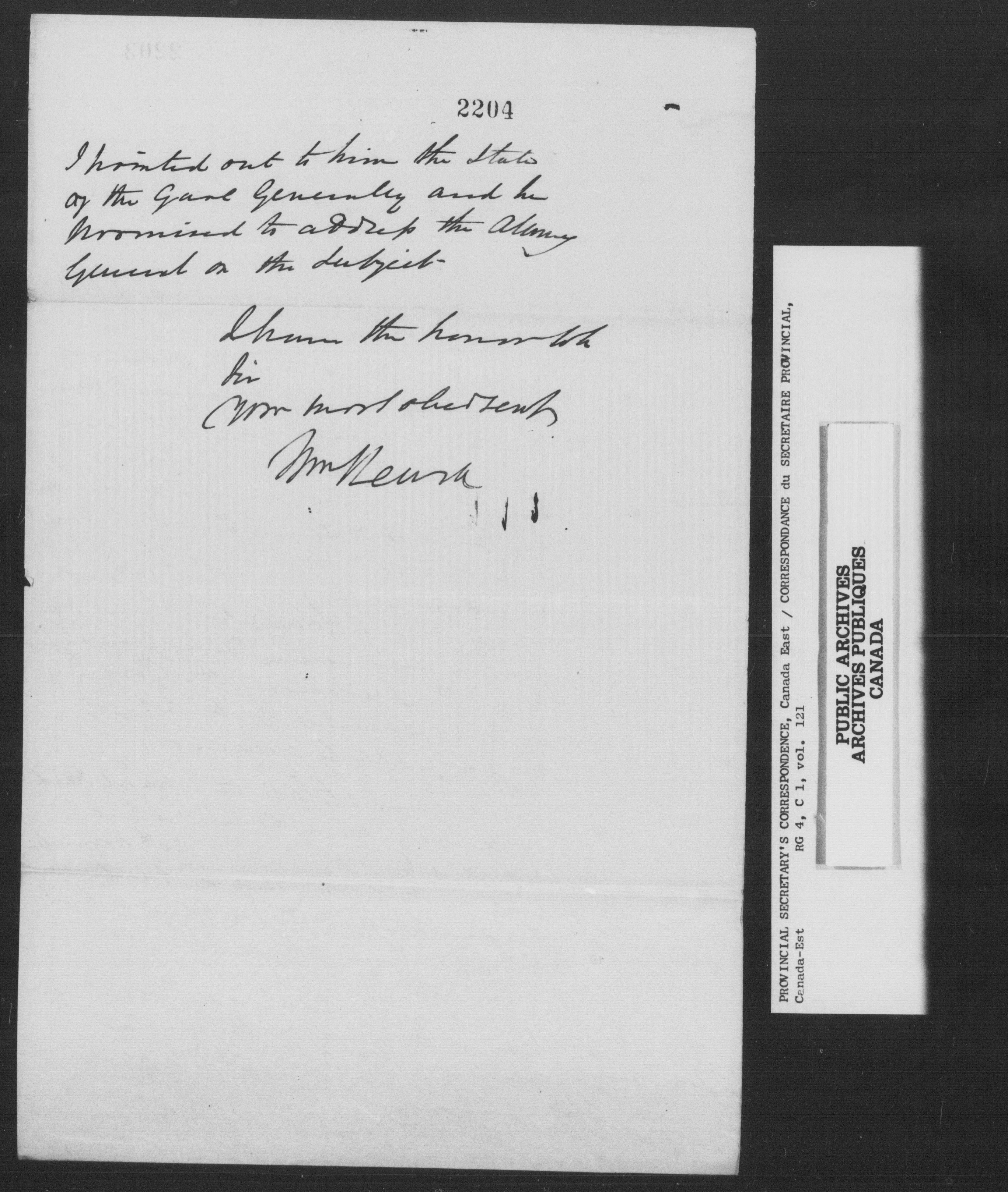 RG 4 C1, Provincial Secretary, Correspondence, Canada East - 13529
