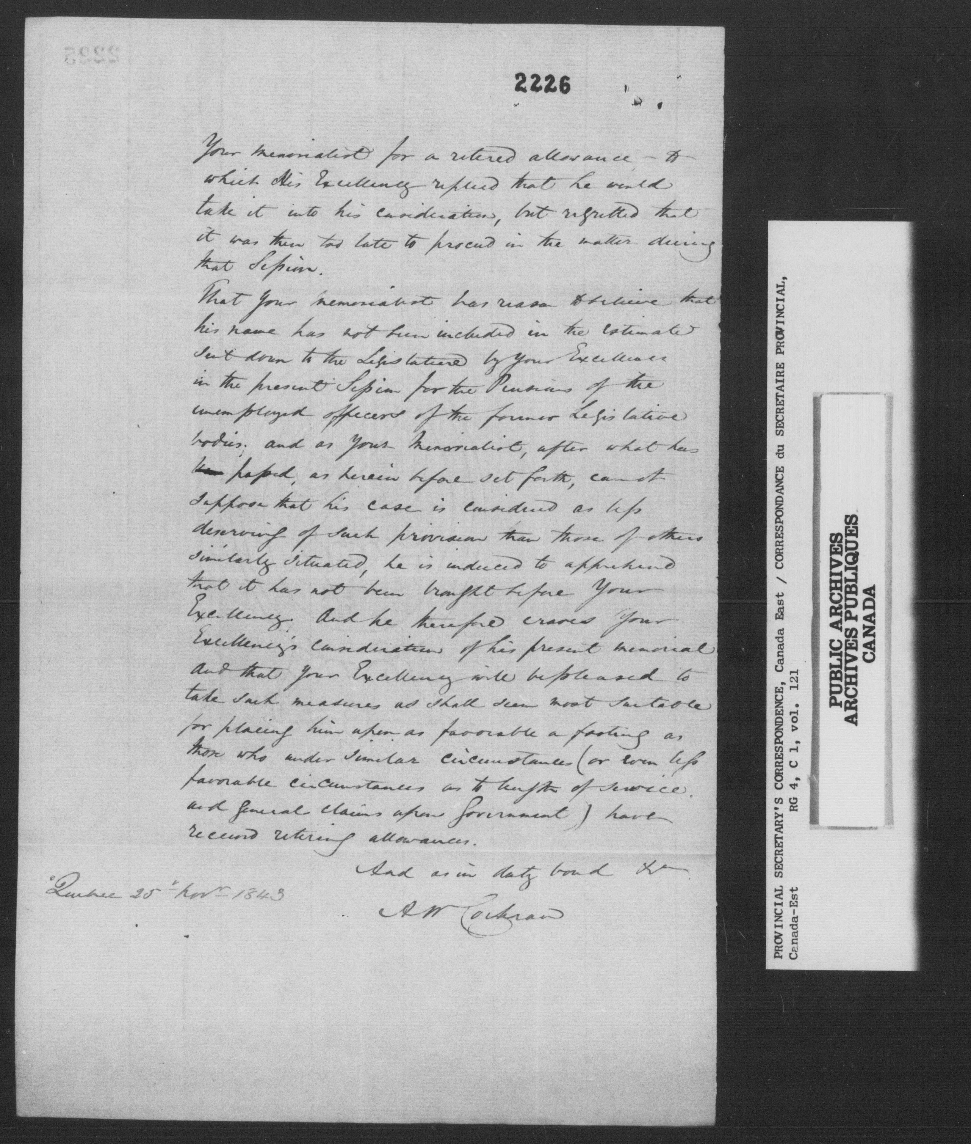 RG 4 C1, Provincial Secretary, Correspondence, Canada East - 13529