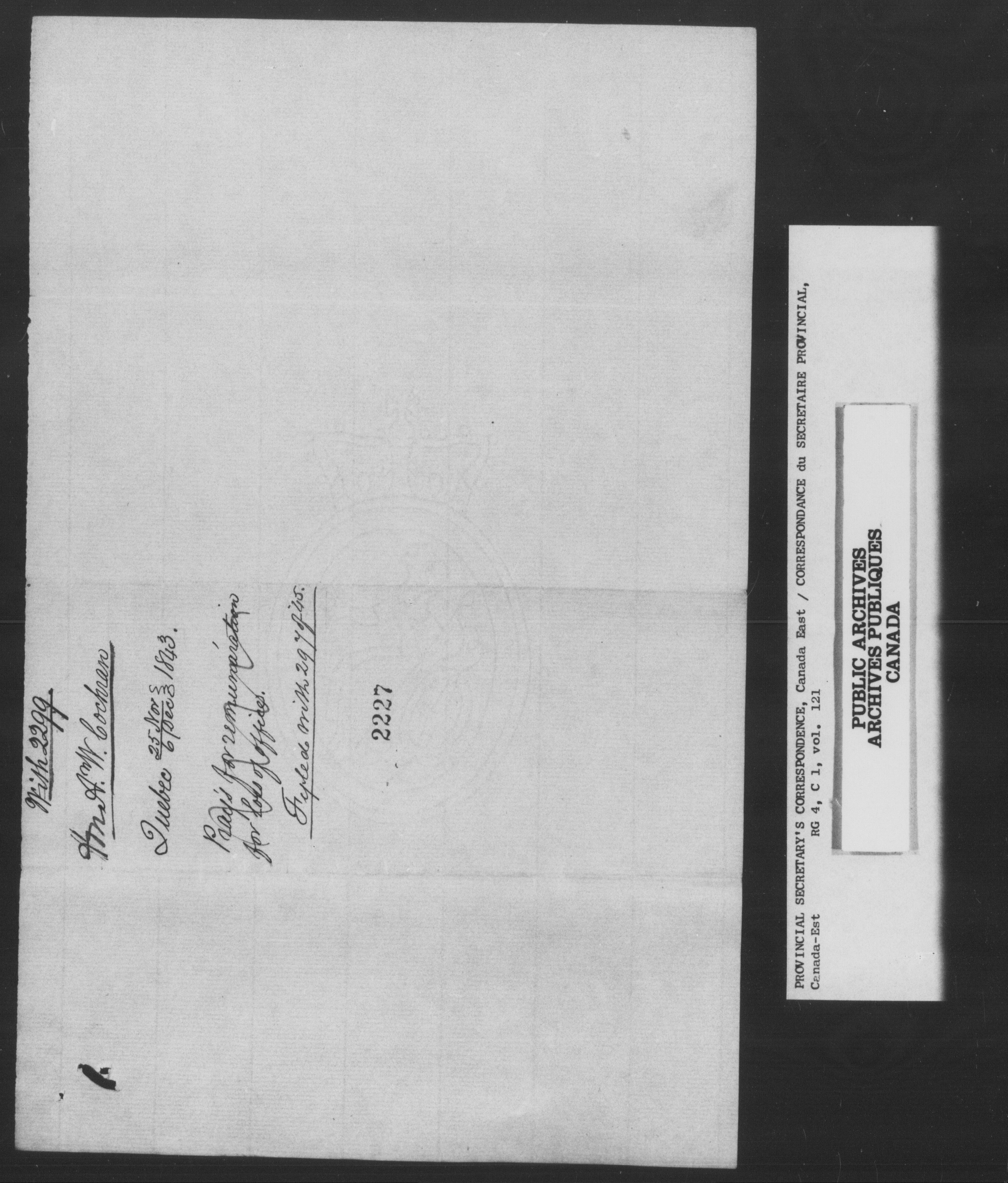 RG 4 C1, Provincial Secretary, Correspondence, Canada East - 13529