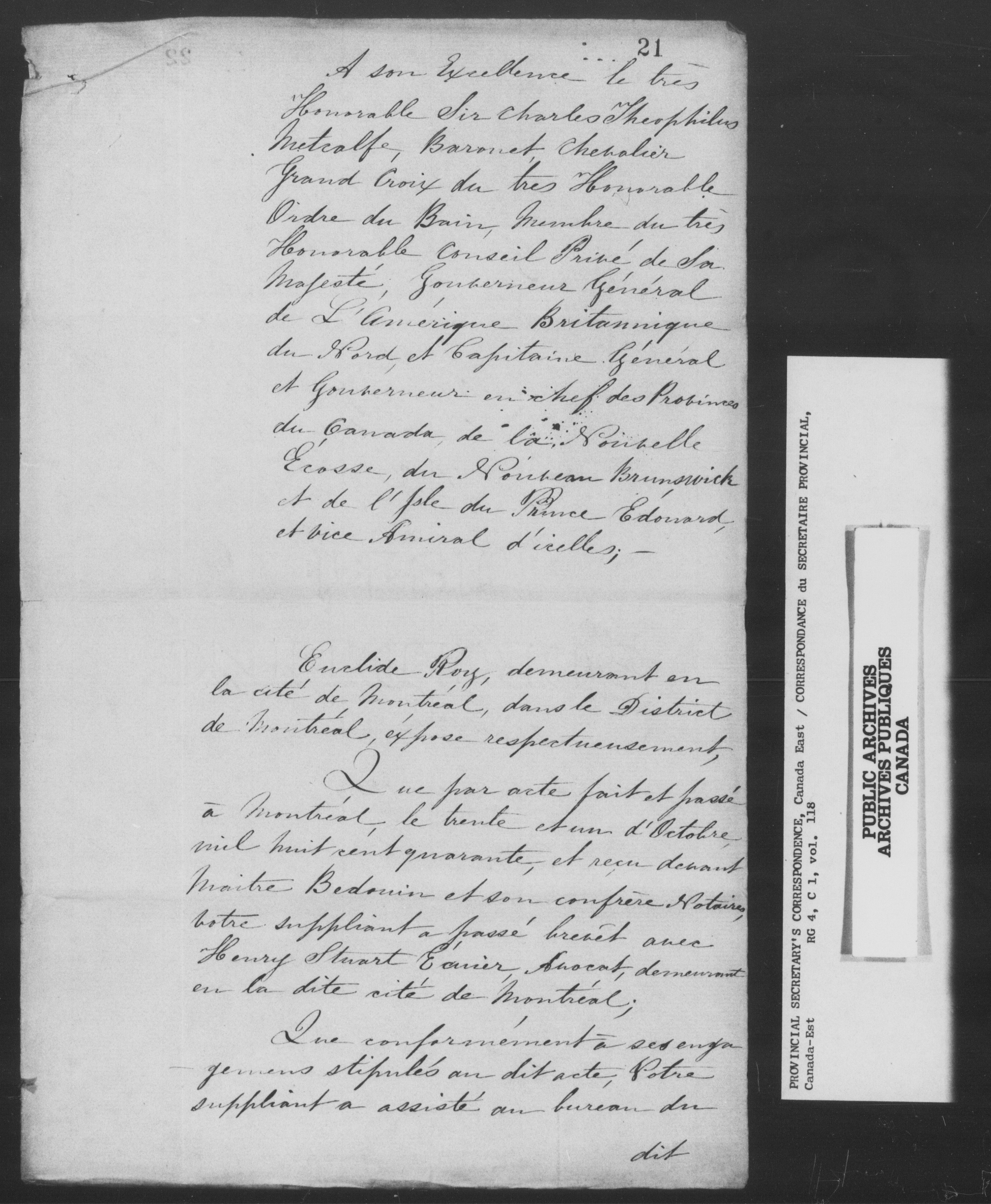 RG 4 C1, Provincial Secretary, Correspondence, Canada East - 13529