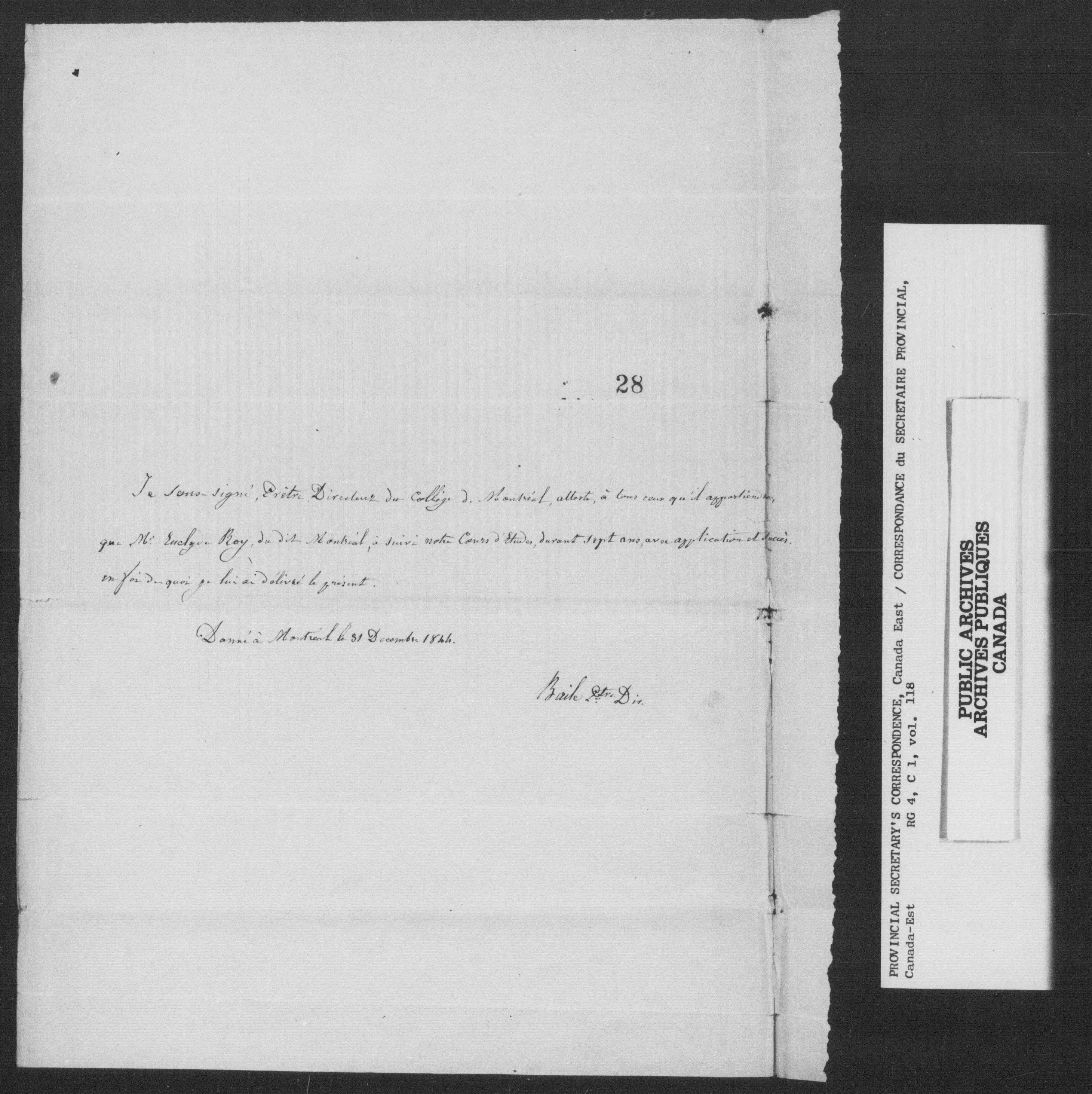RG 4 C1, Provincial Secretary, Correspondence, Canada East - 13529