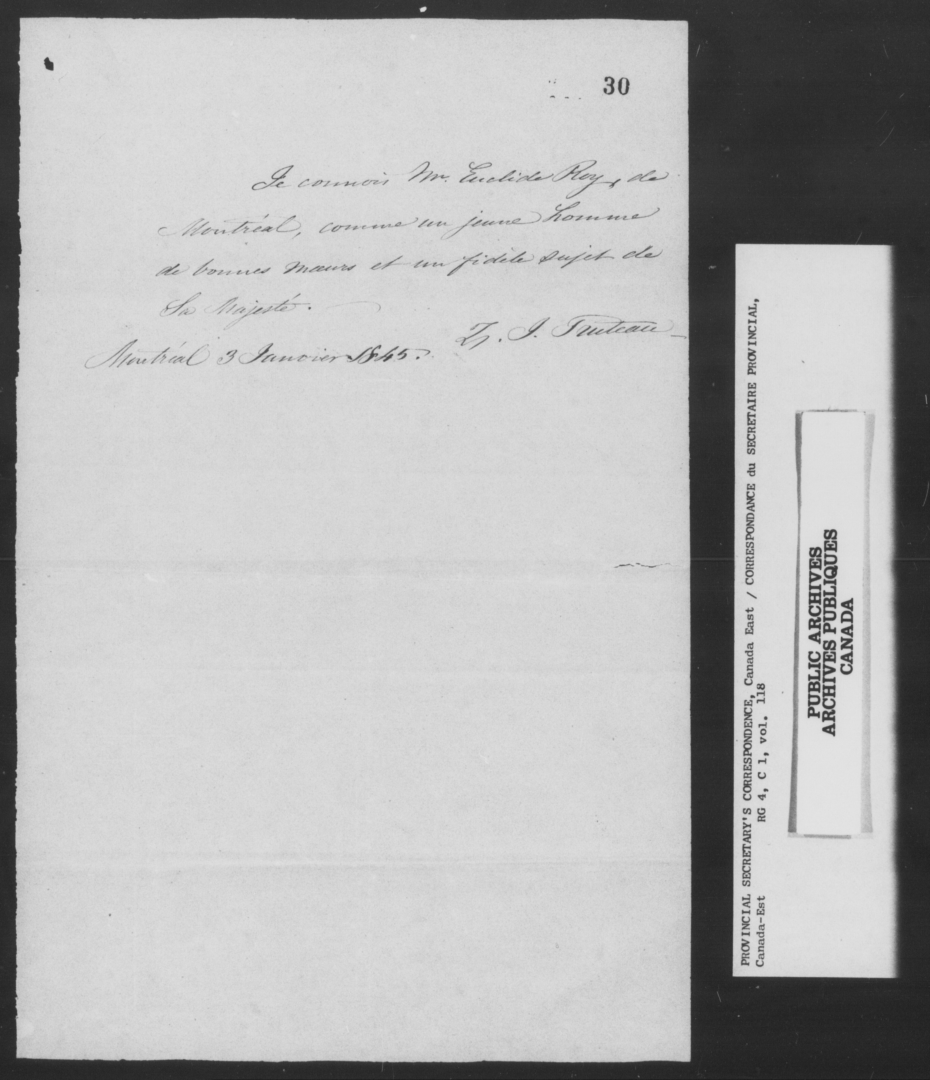 RG 4 C1, Provincial Secretary, Correspondence, Canada East - 13529