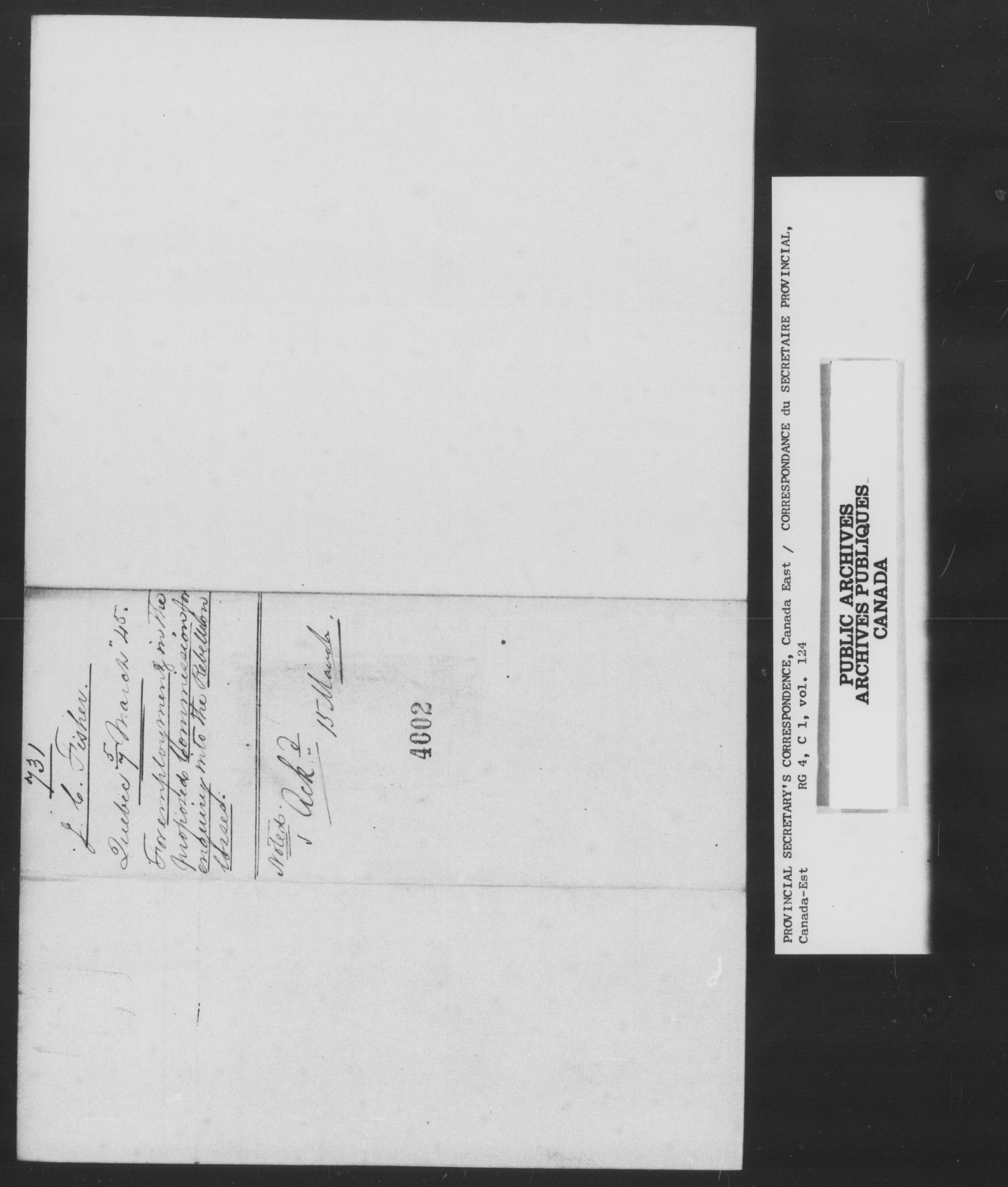 RG 4 C1, Provincial Secretary, Correspondence, Canada East - 13530