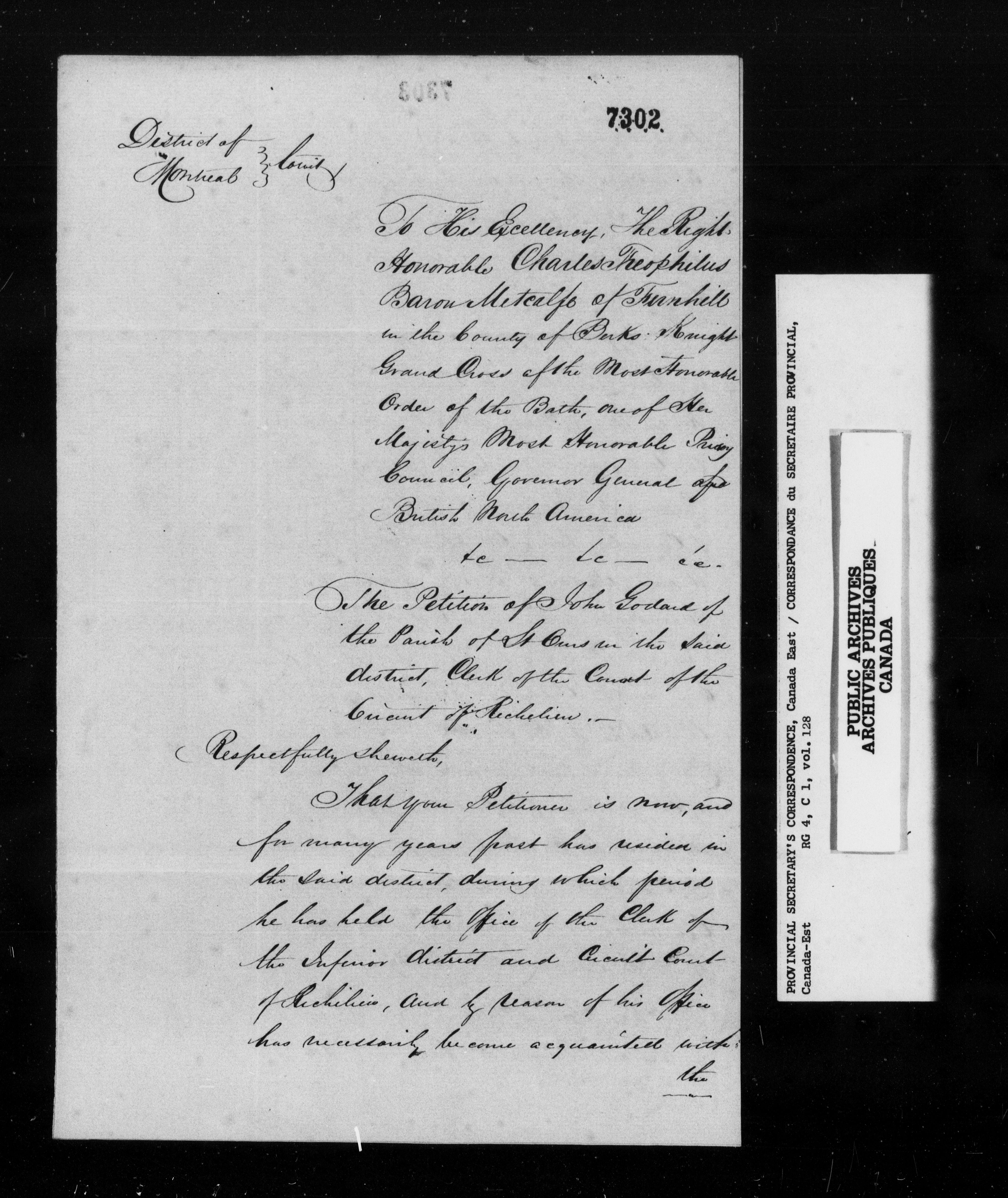 Canada East : Provincial Secretary numbered correspondence files, 1839-1867 : C-13533