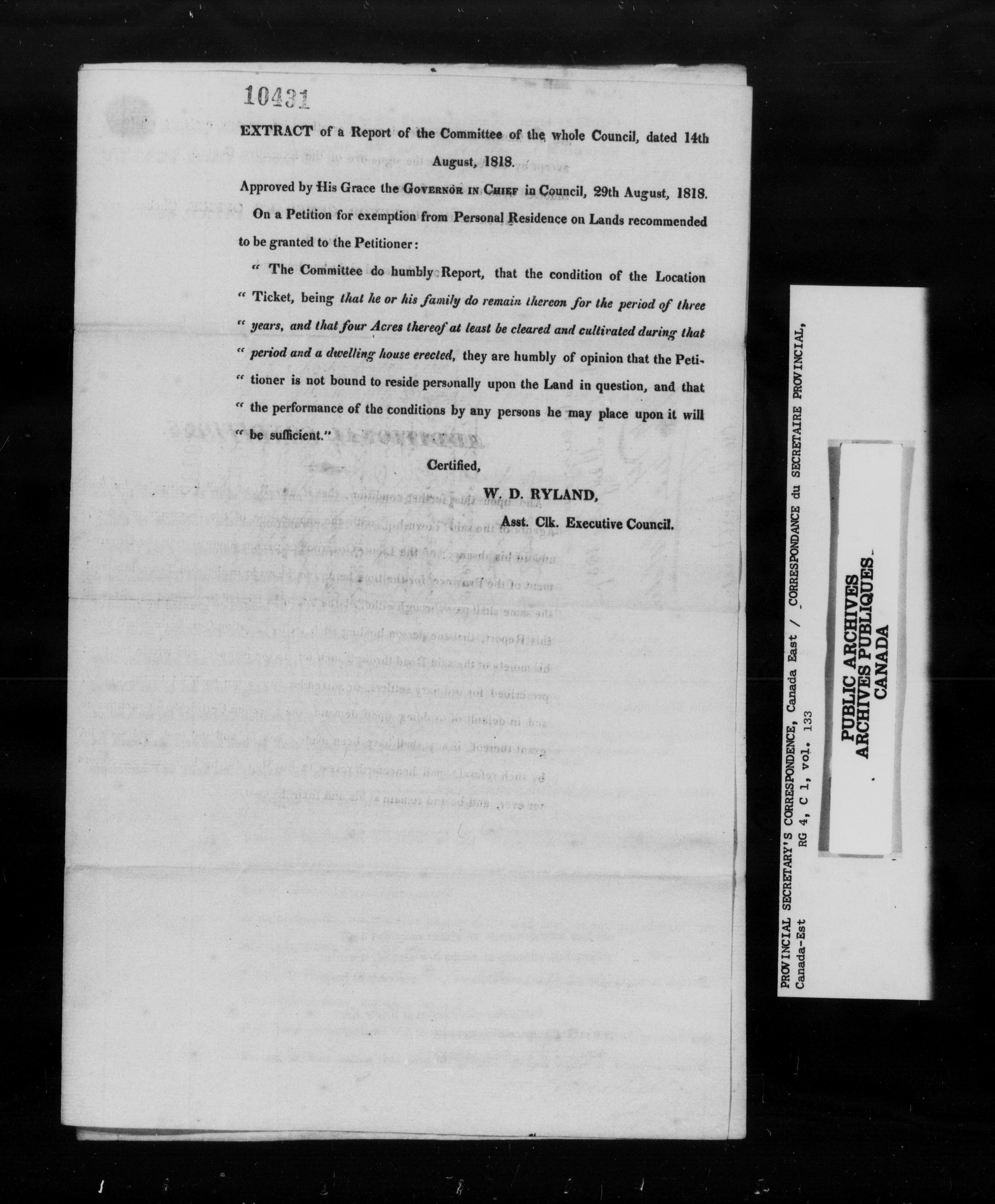 Provincial Secretary, Canada East : Numbered Correspondence Files, 1839-1867 - 13534