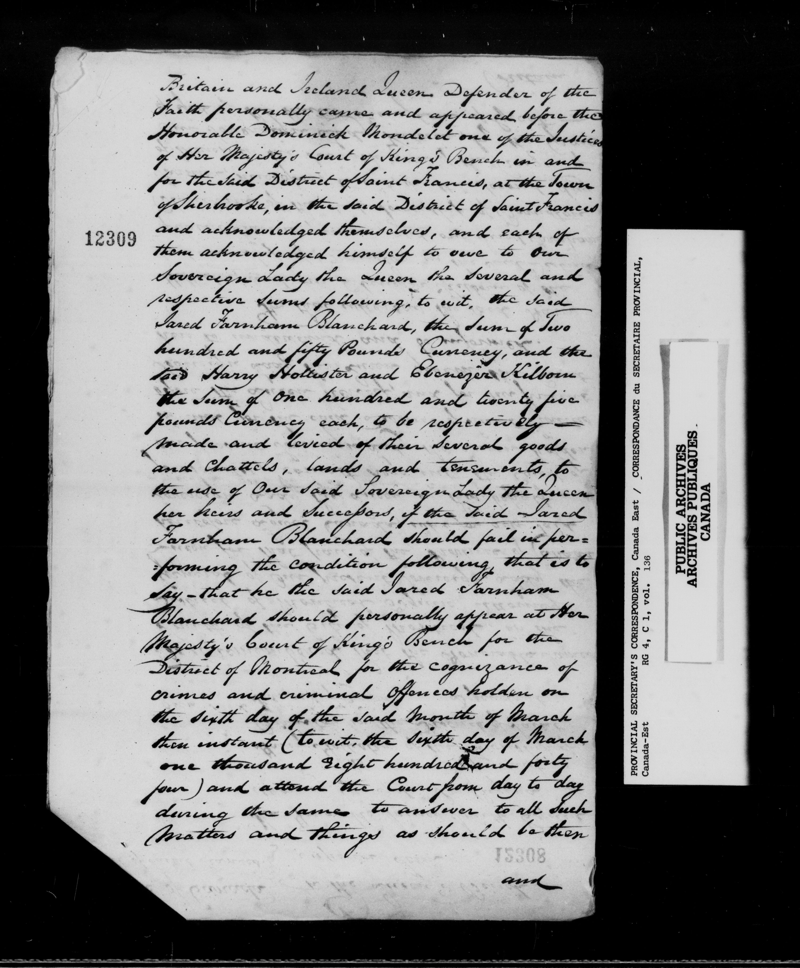 Provincial Secretary, Canada East : Numbered Correspondence Files, 1839-1867 - 13536