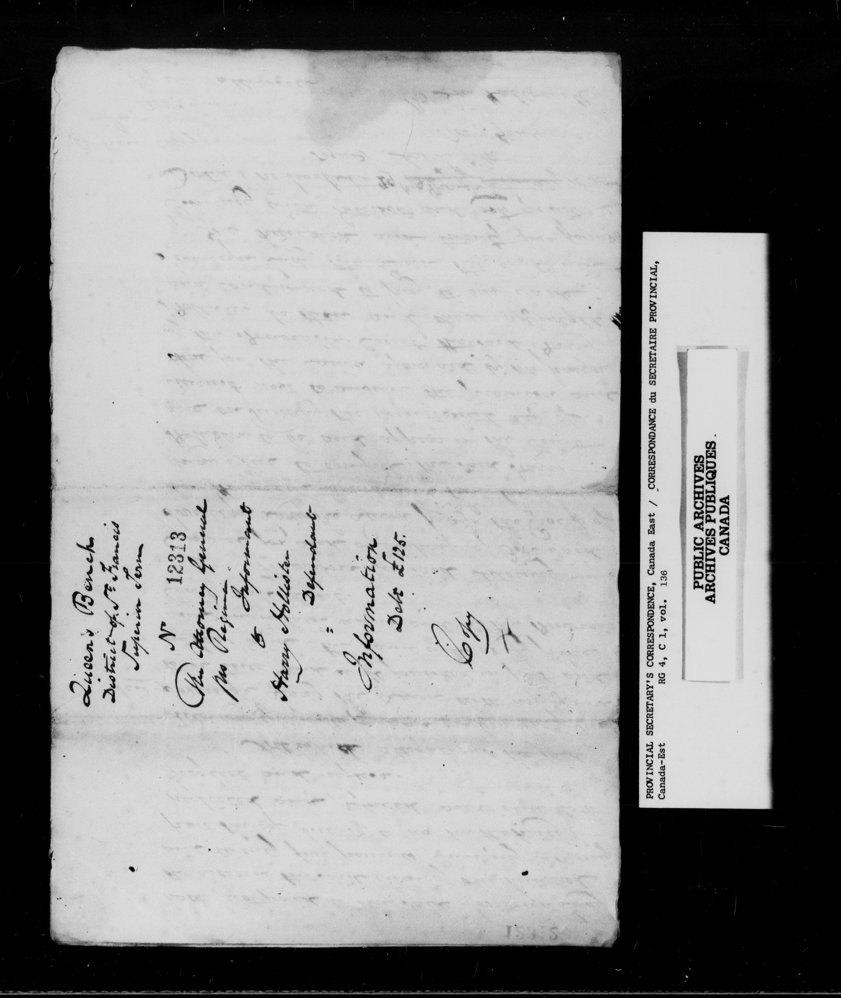 Provincial Secretary, Canada East : Numbered Correspondence Files, 1839-1867 - 13536