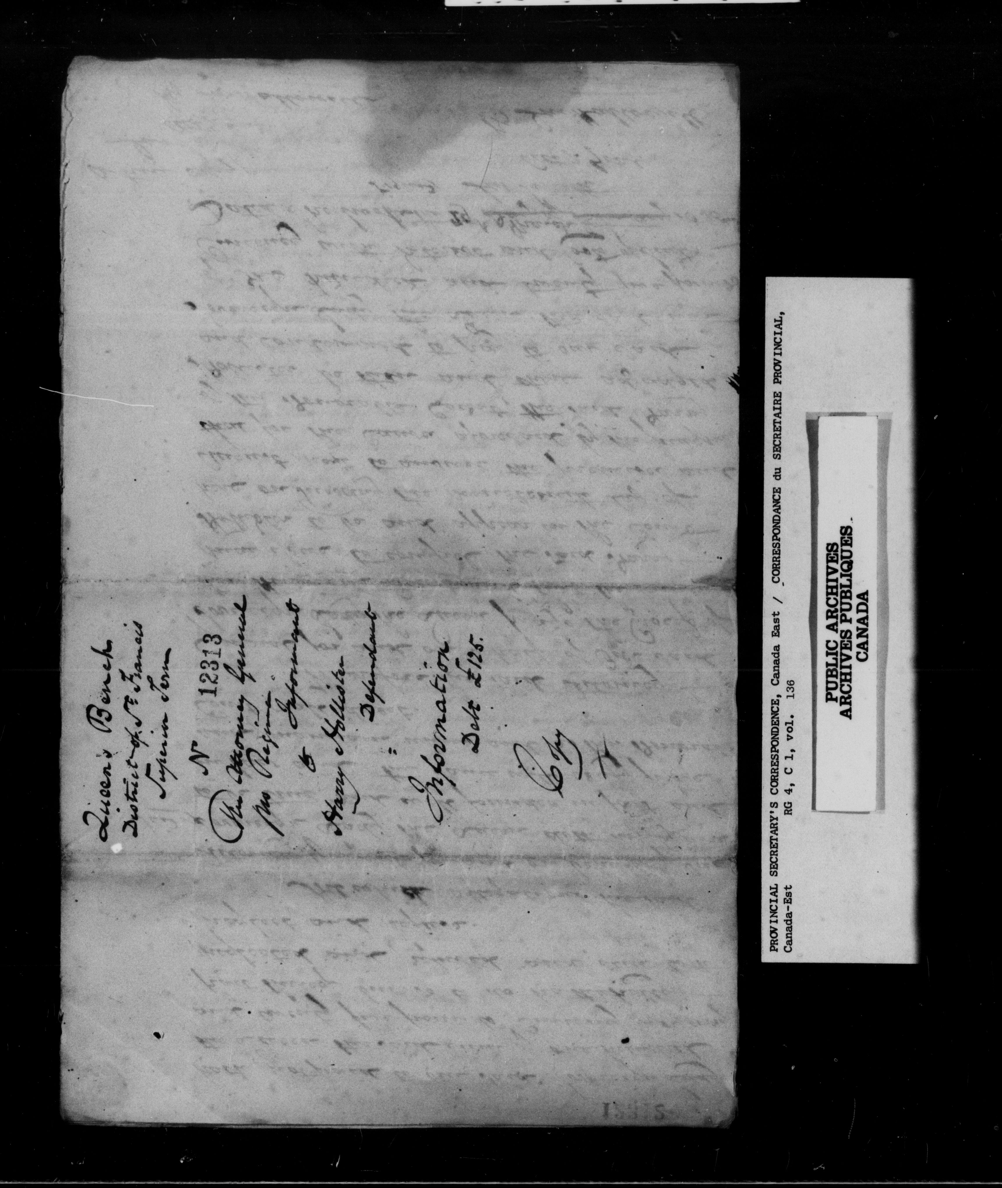Canada East : Provincial Secretary numbered correspondence files, 1839-1867 : C-13536