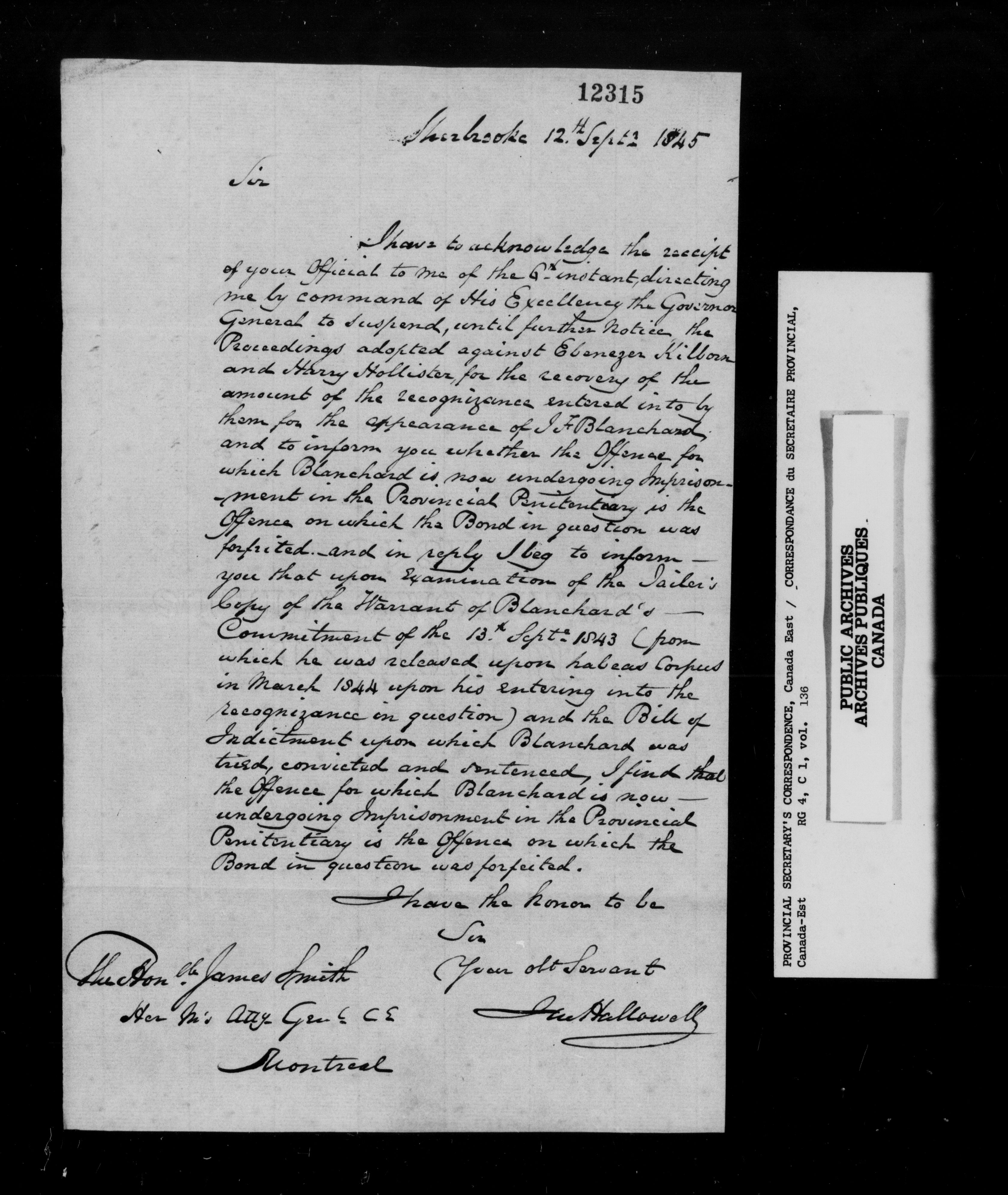 Provincial Secretary, Canada East : Numbered Correspondence Files, 1839-1867 - 13536