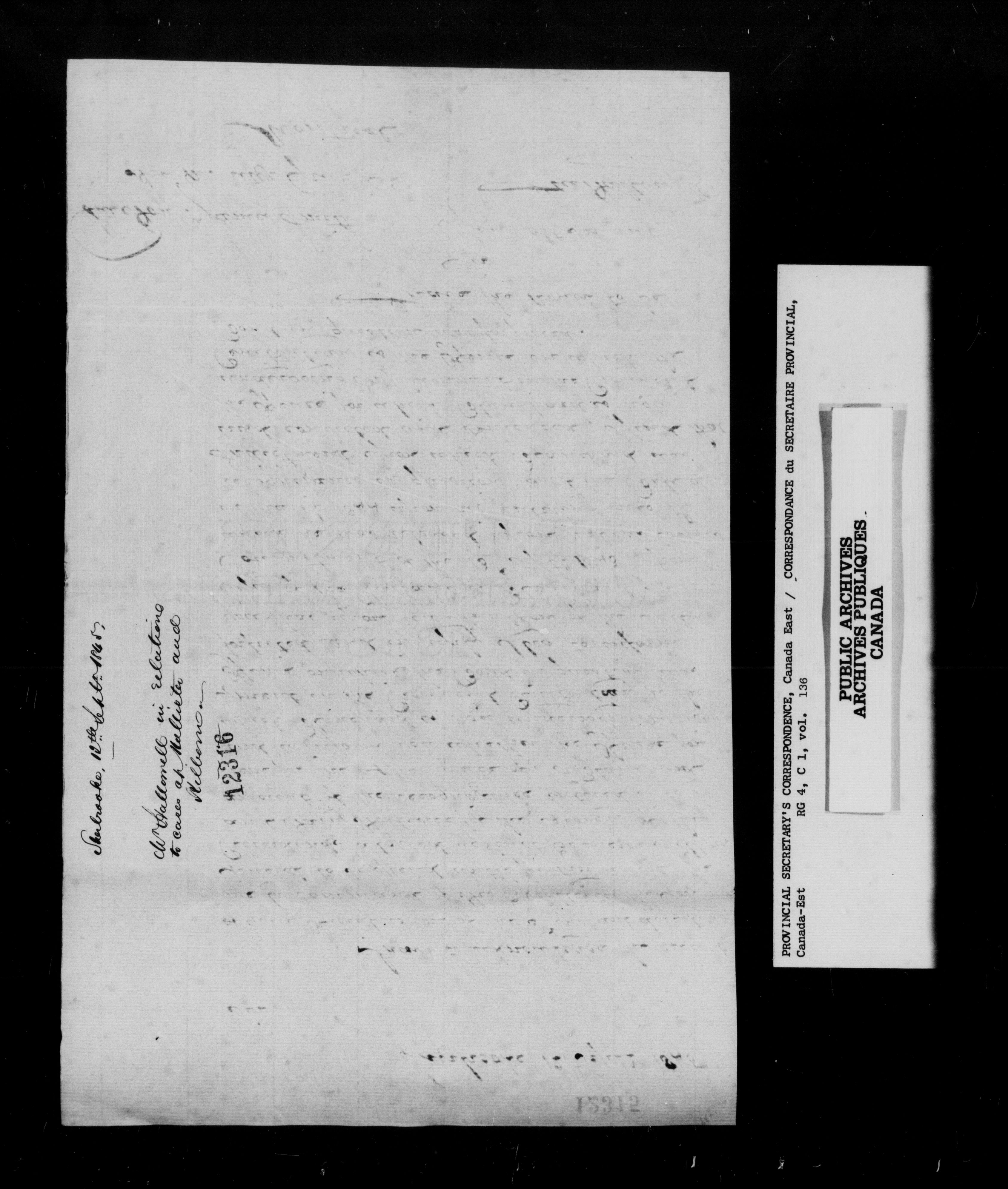 Provincial Secretary, Canada East : Numbered Correspondence Files, 1839-1867 - 13536