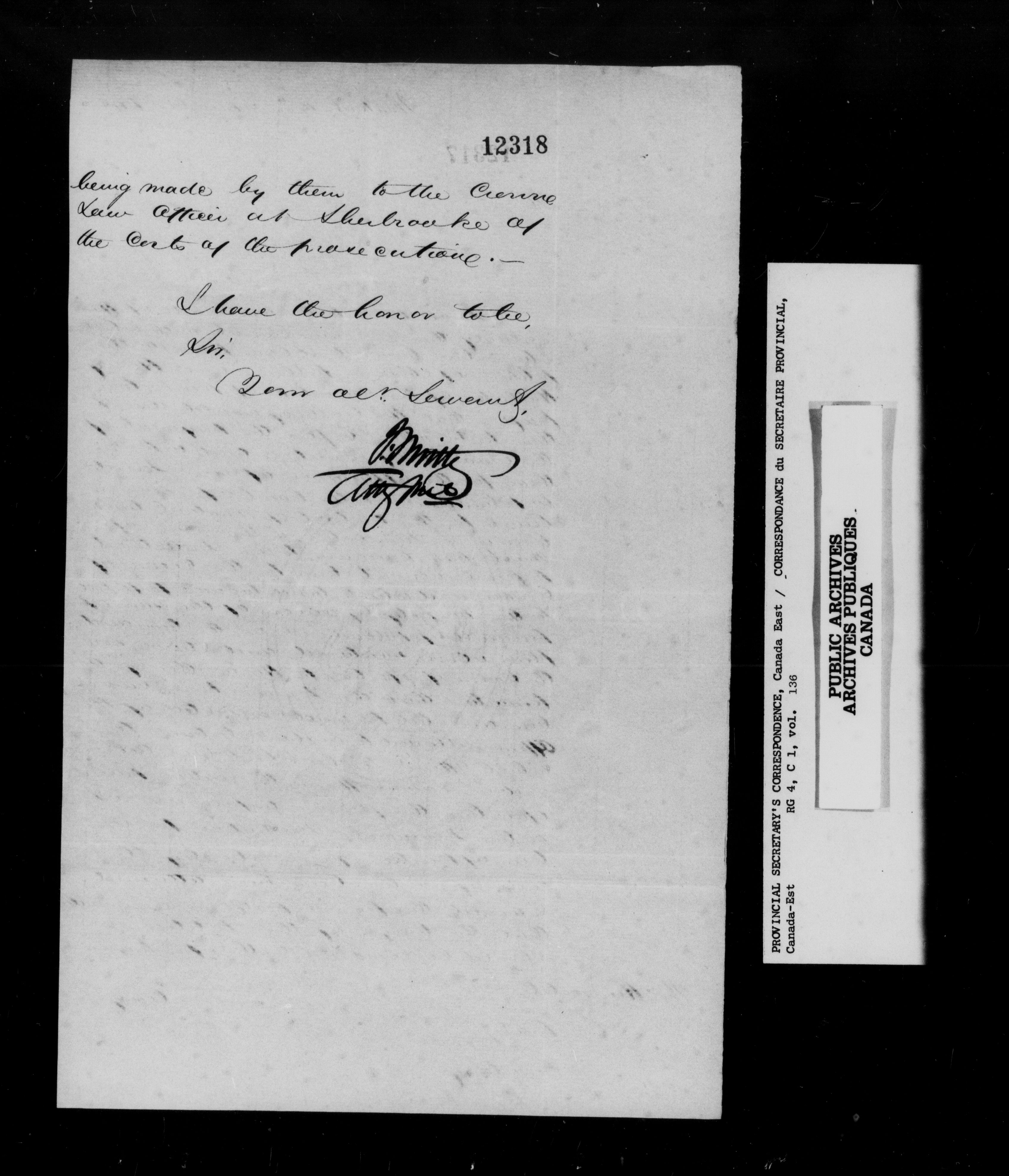 Provincial Secretary, Canada East : Numbered Correspondence Files, 1839-1867 - 13536